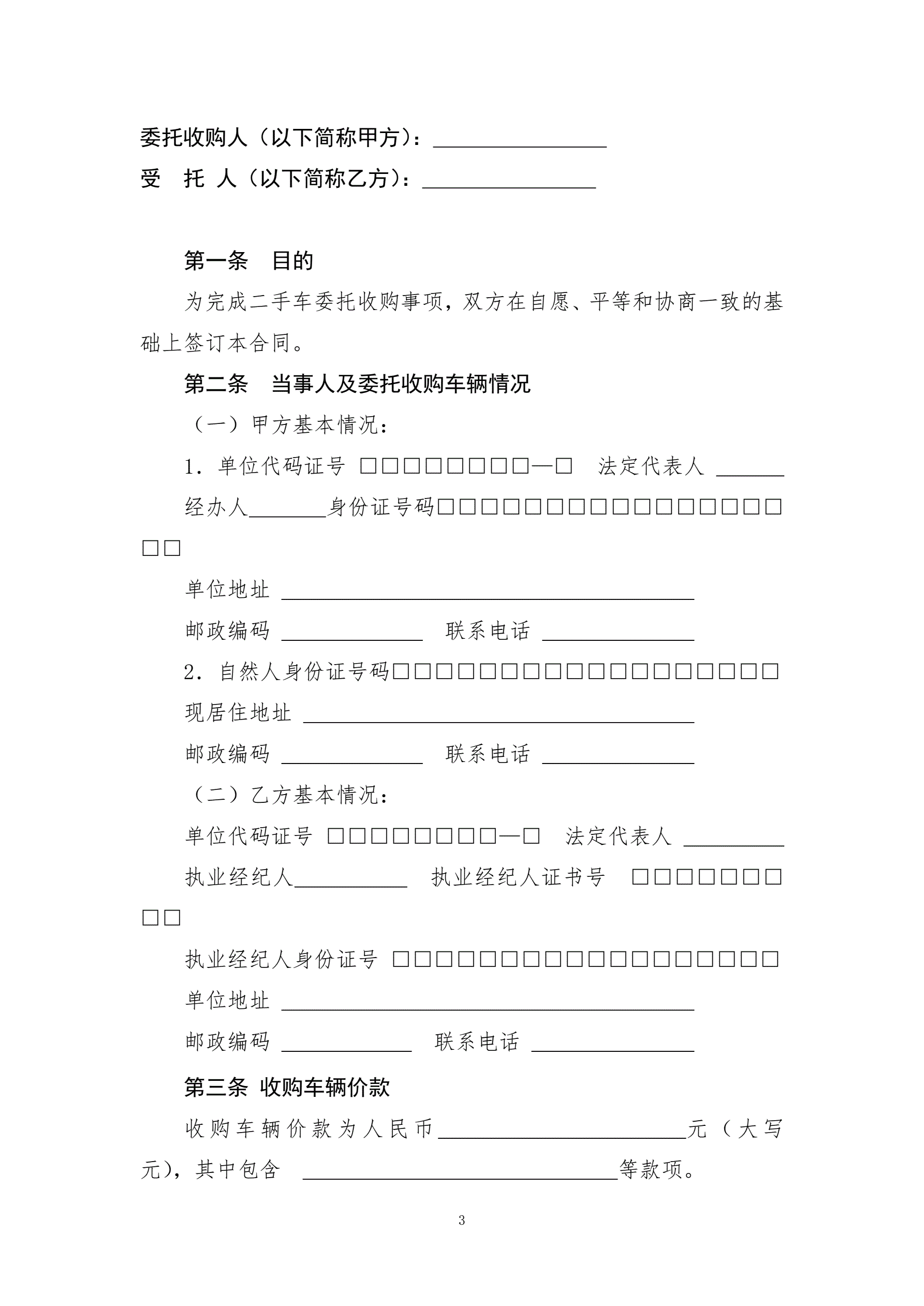 >6二手车委托收购合同
