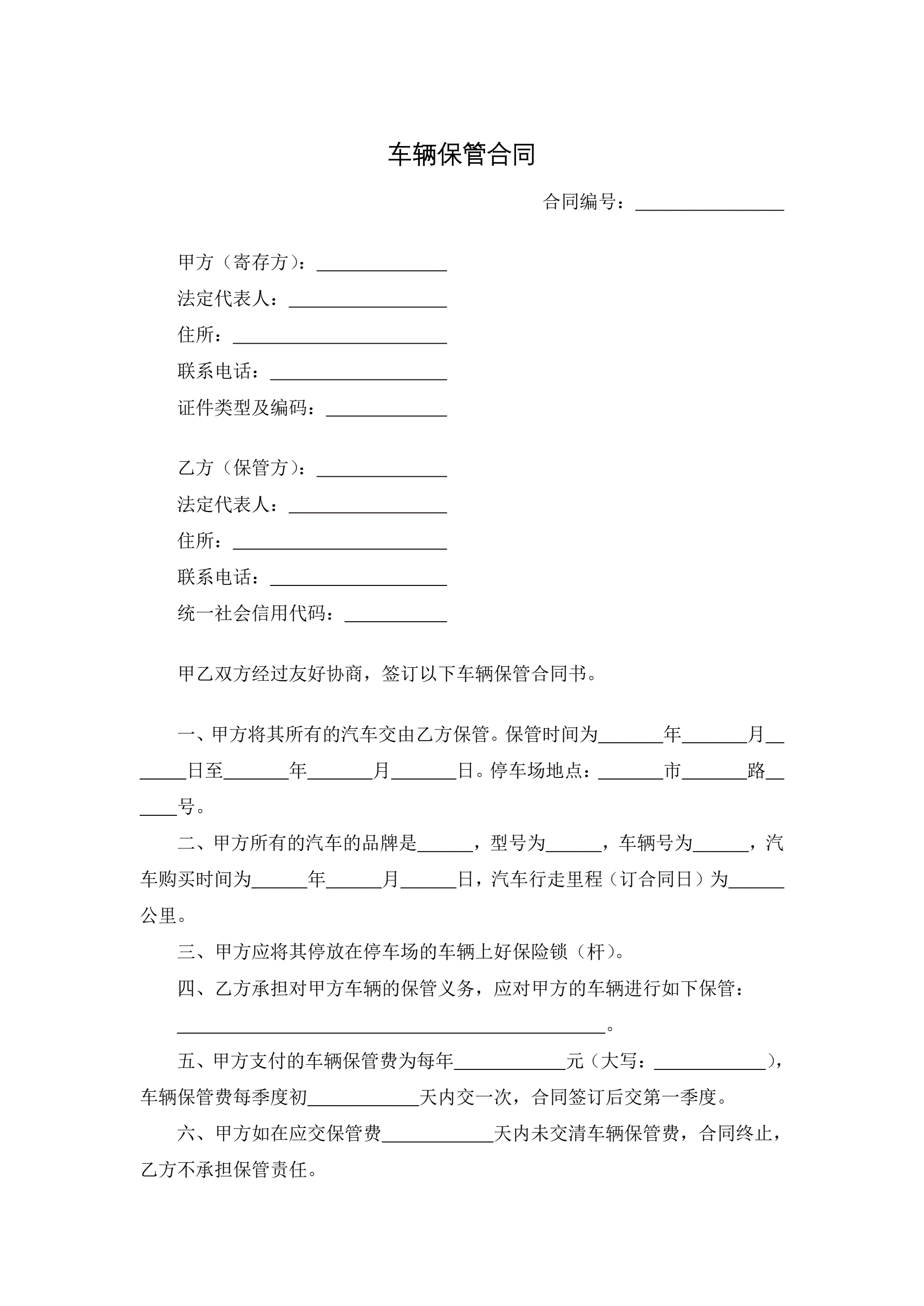 车辆保管合同