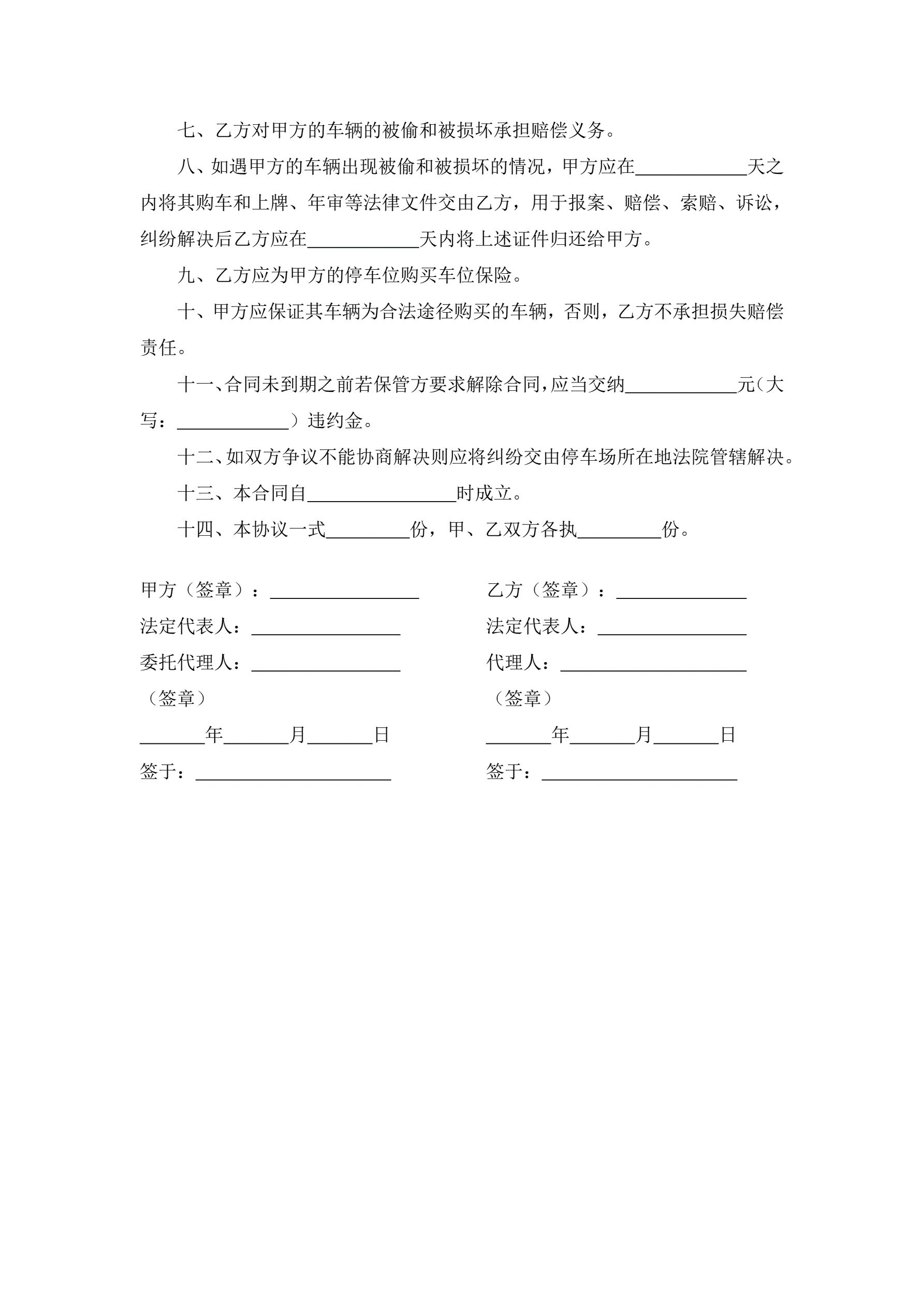 >车辆保管合同