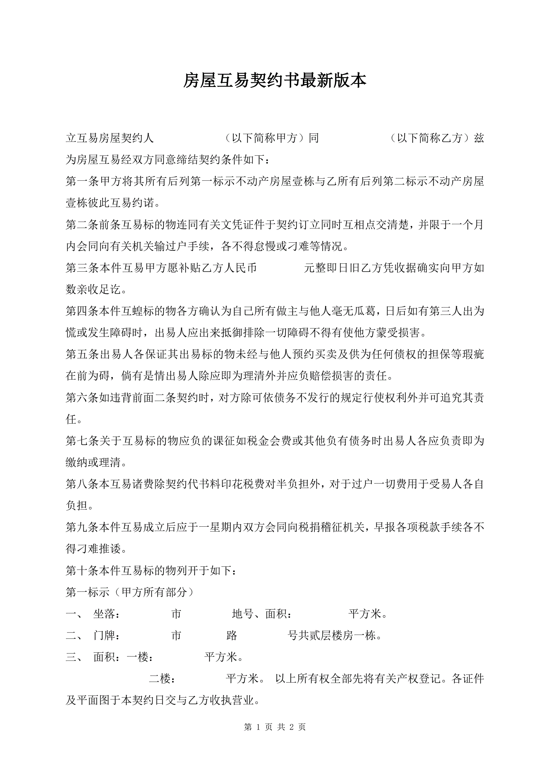 >房屋互易契约书最新版本