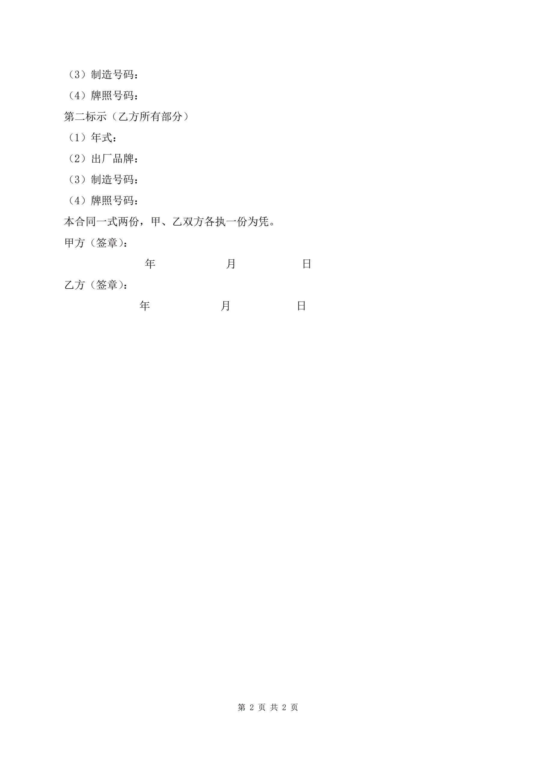 >汽车互易合同最新版