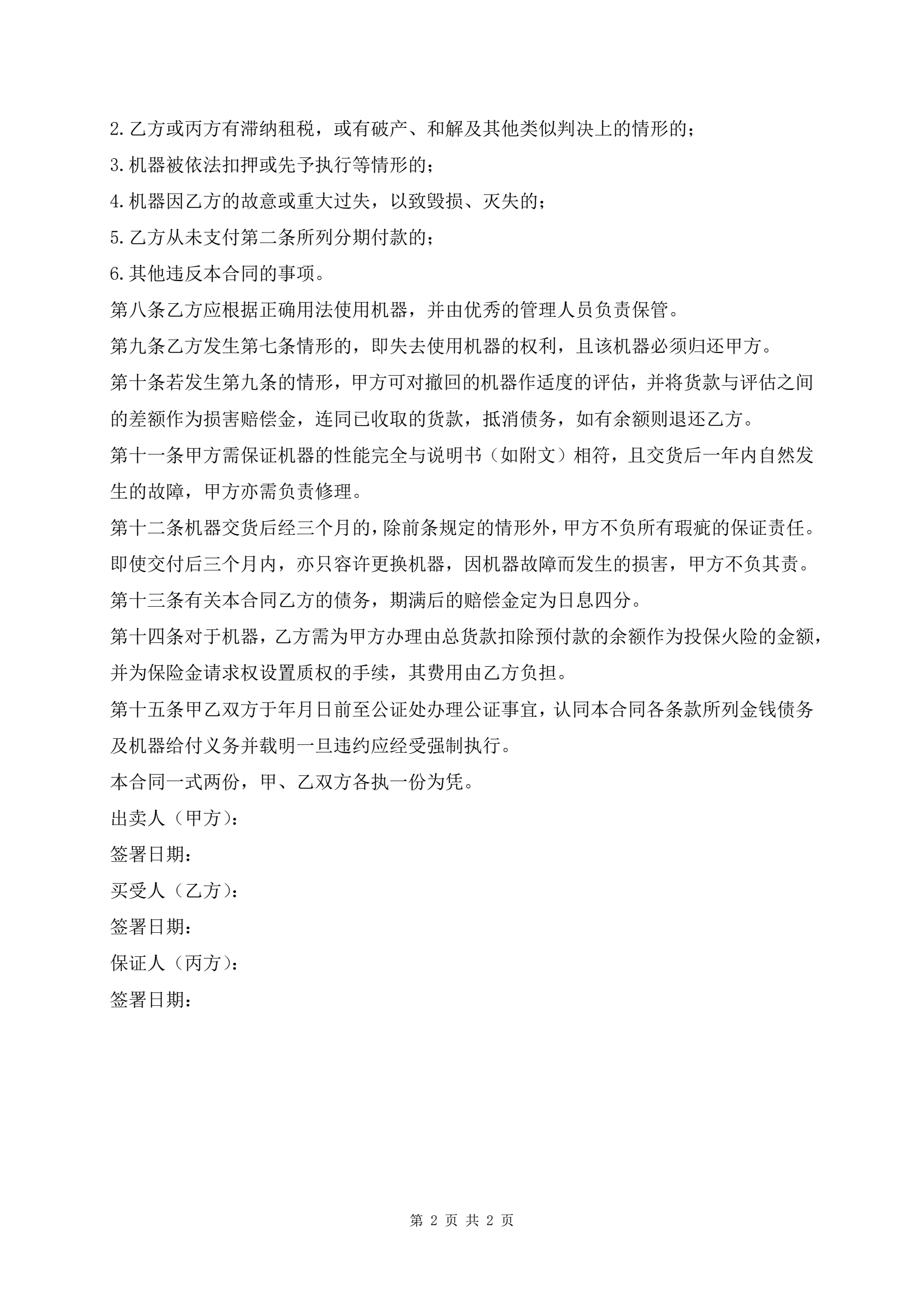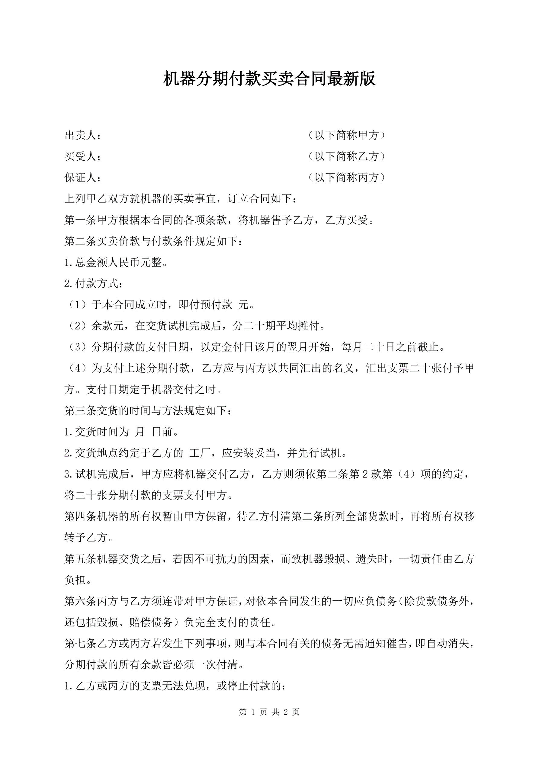 机器分期付款买卖合同最新版