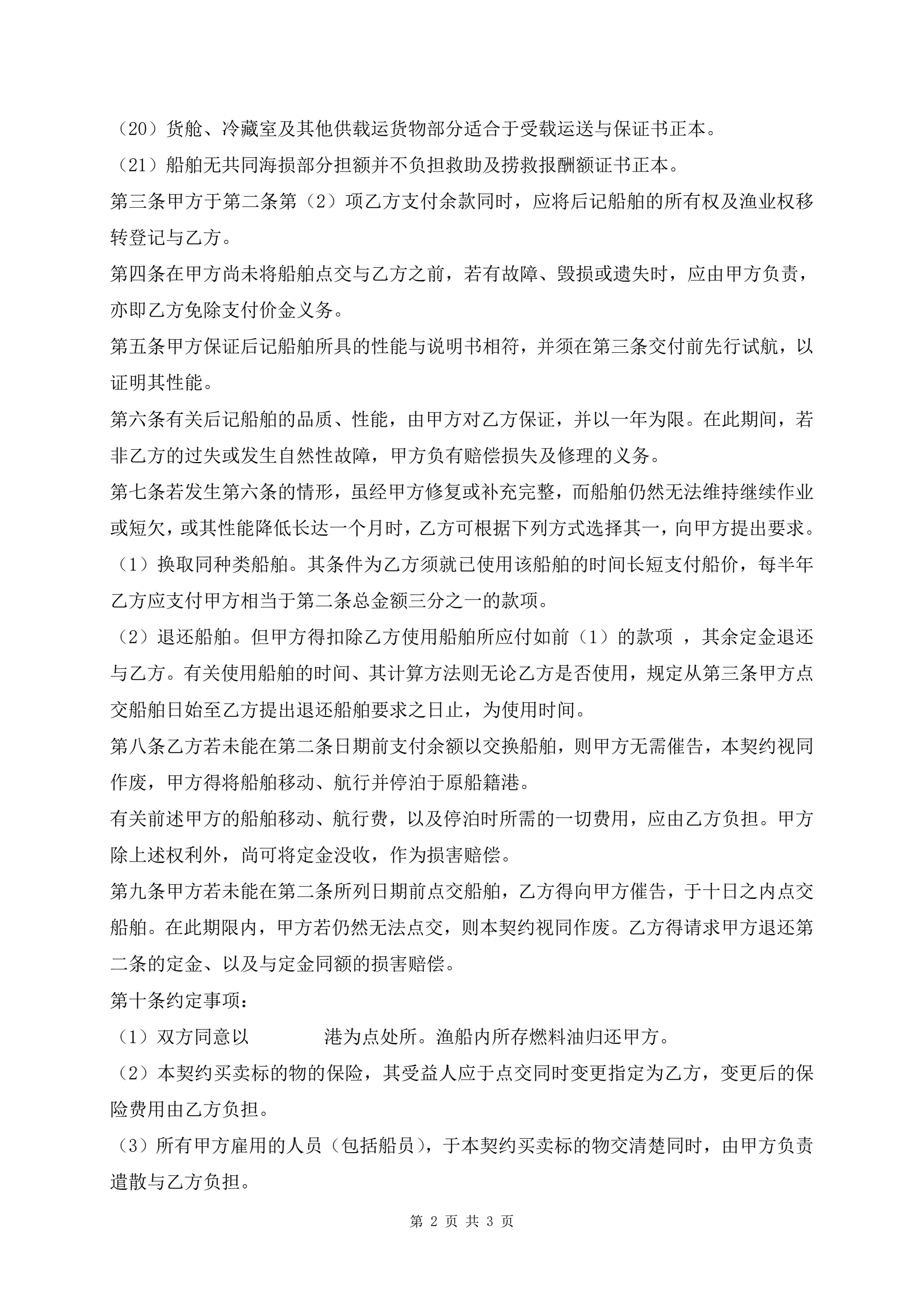 >船舶买卖契约协议书