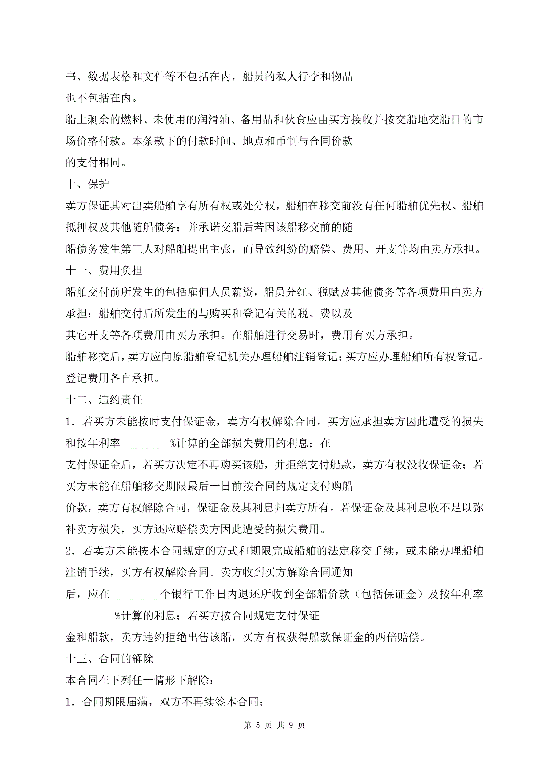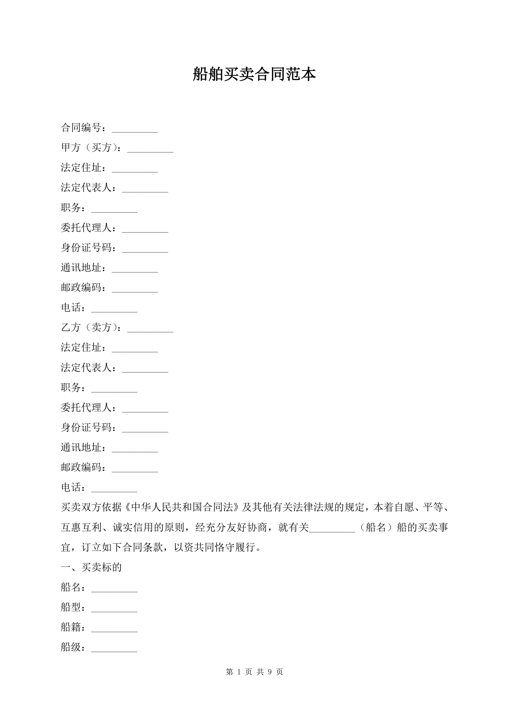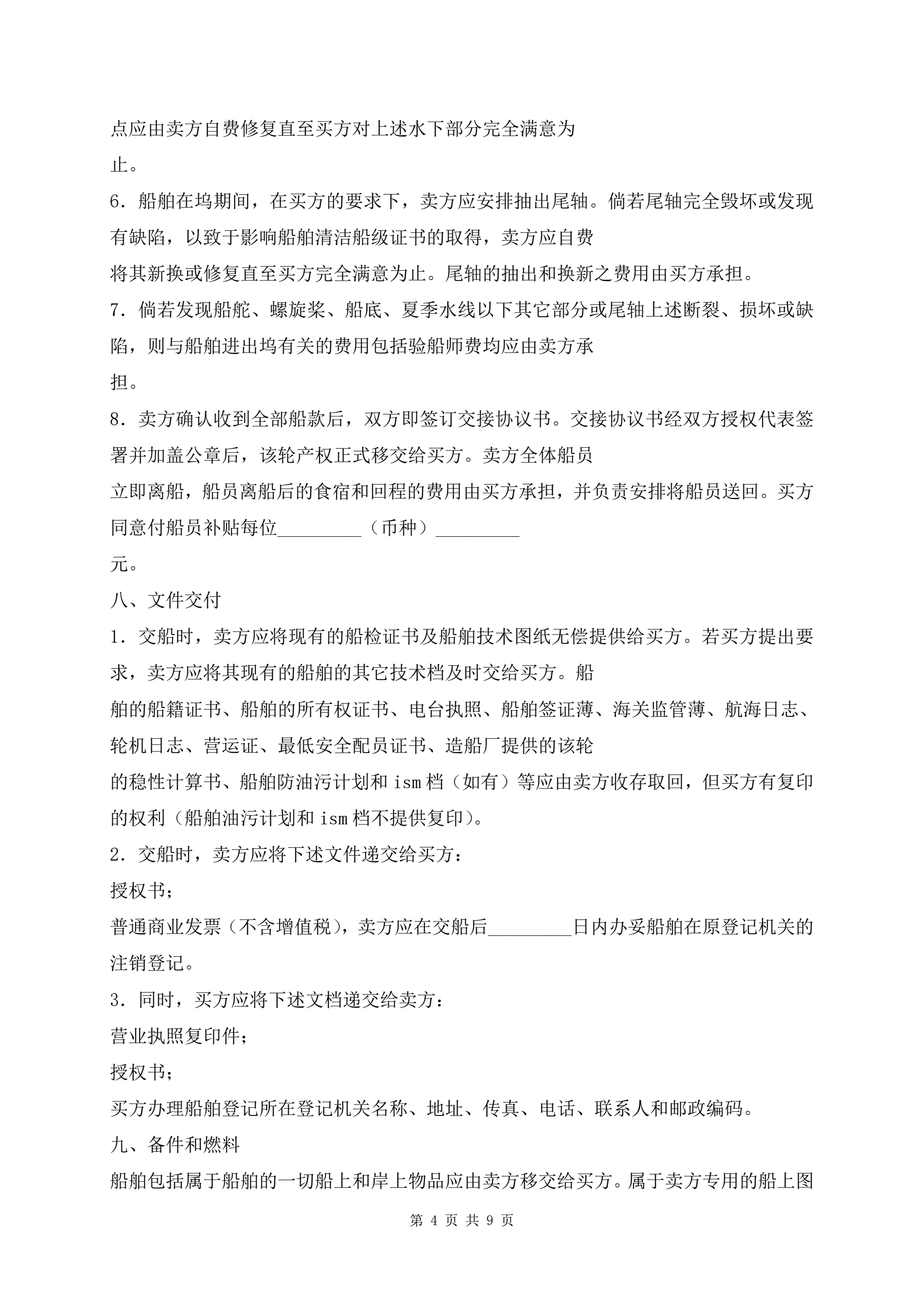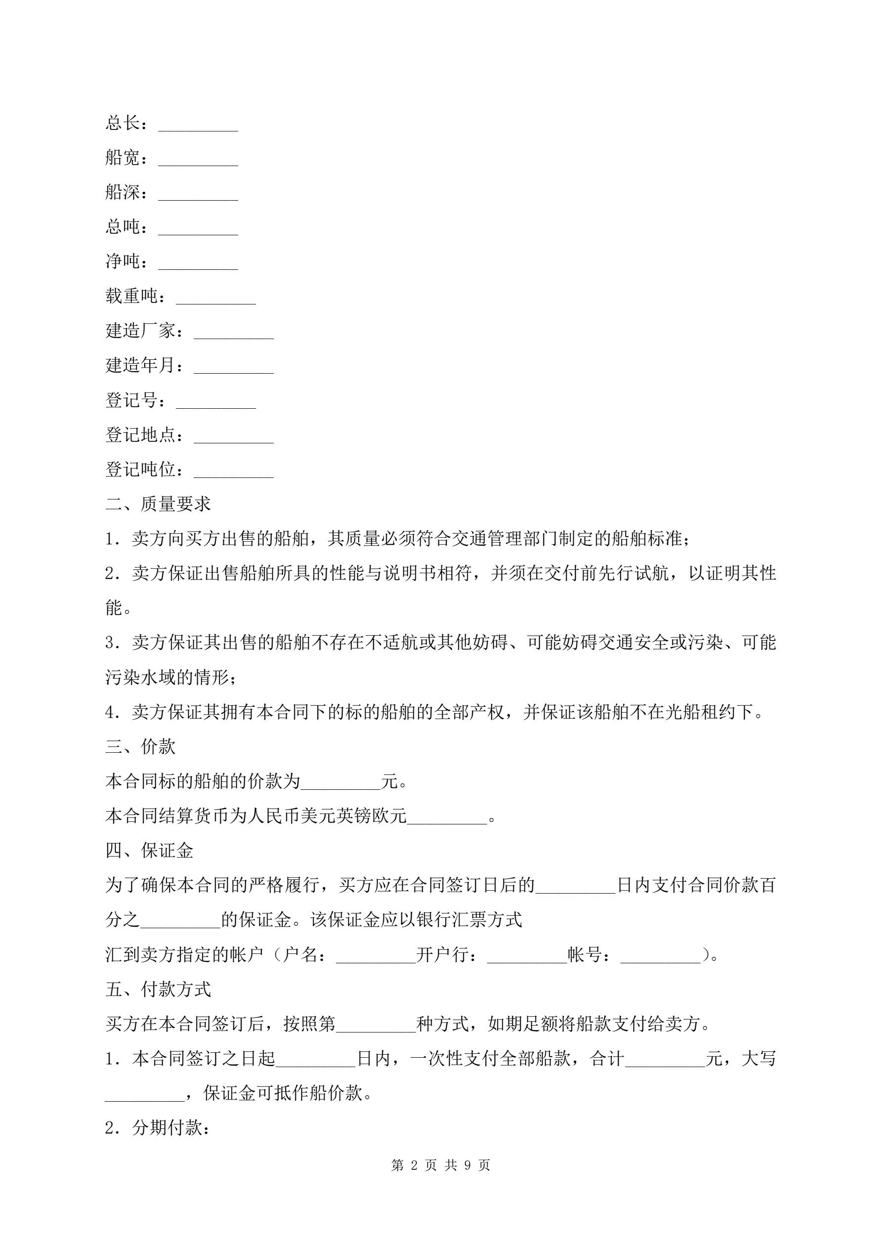 船舶买卖合同范本
