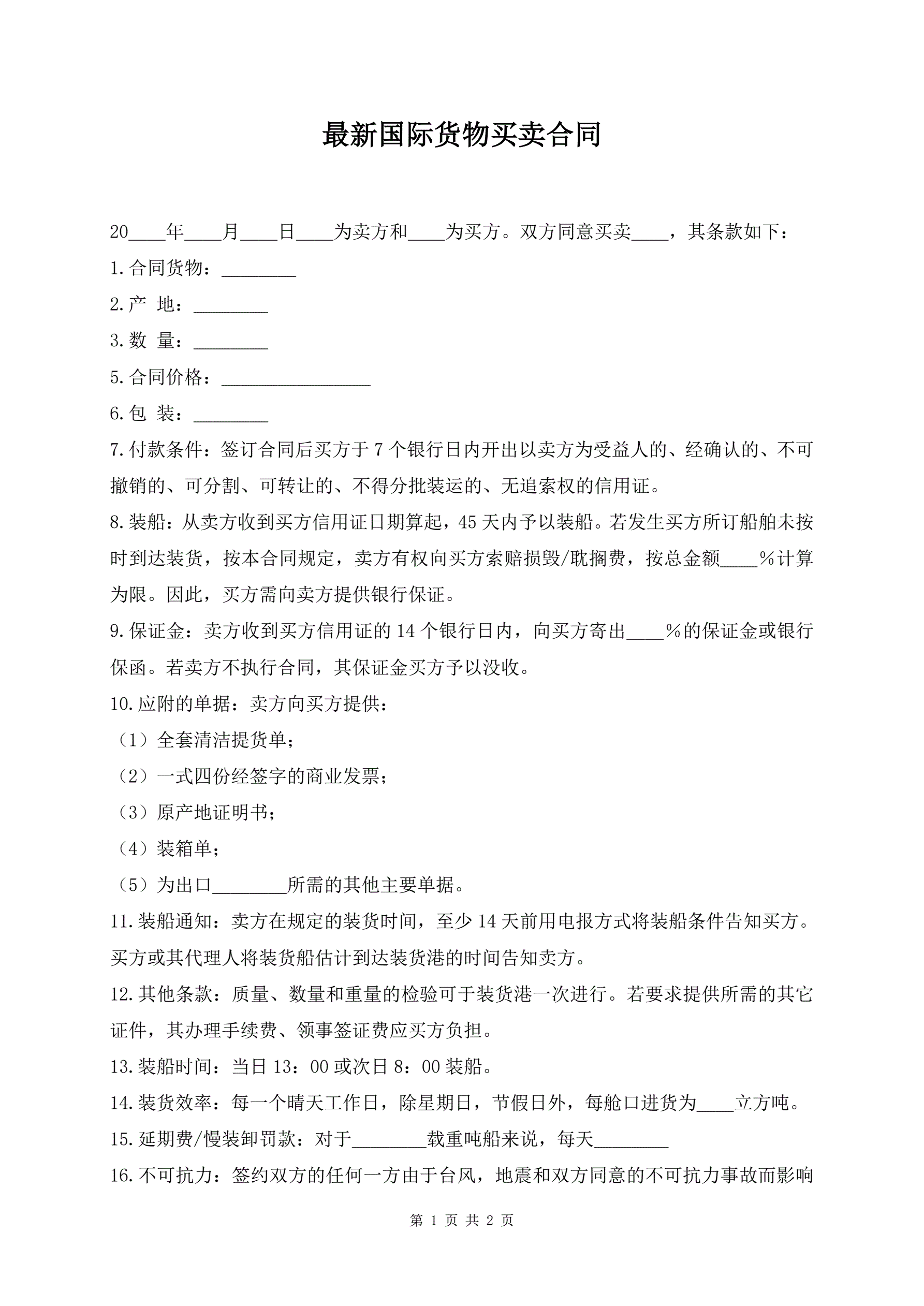 最新国际货物买卖合同