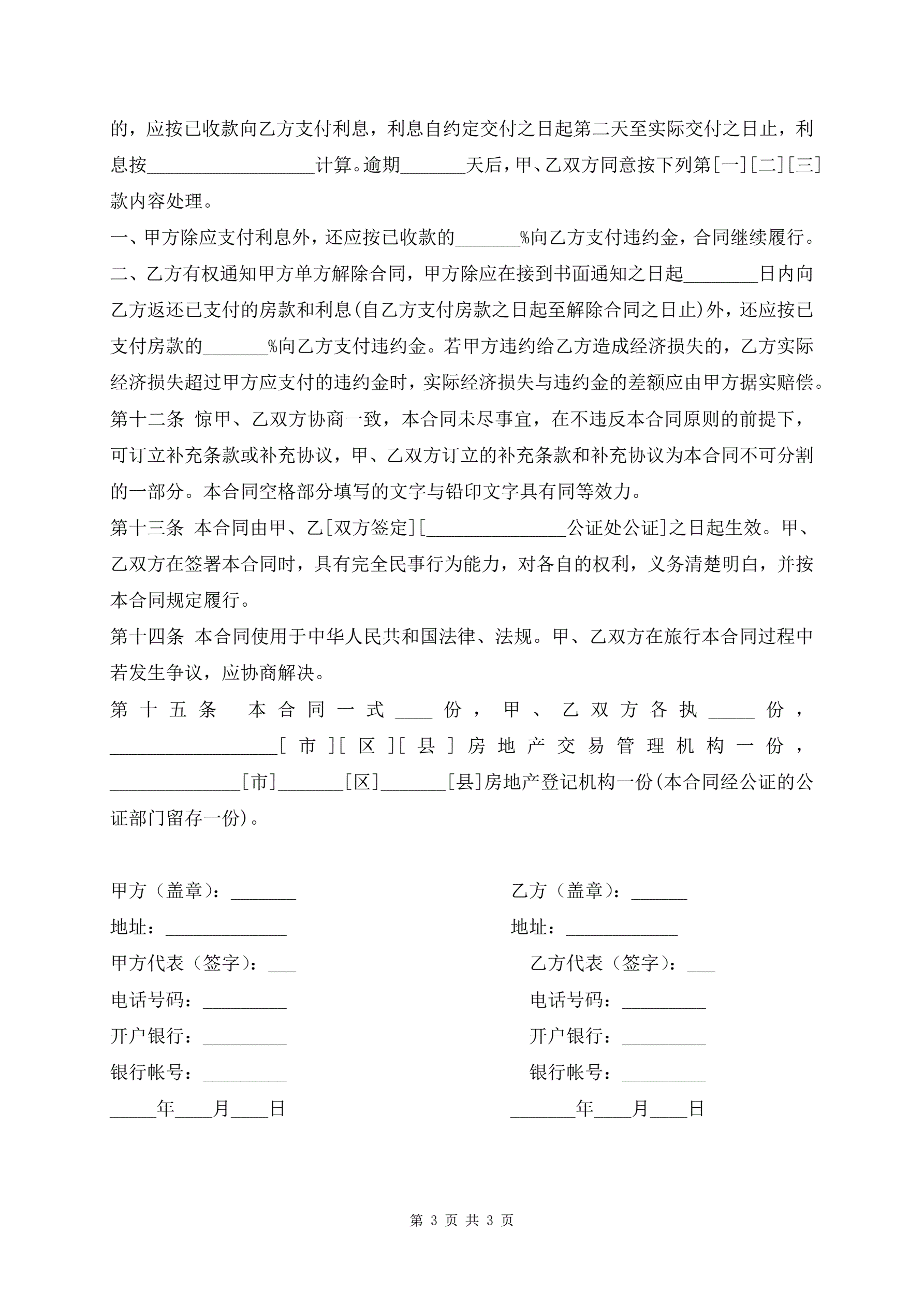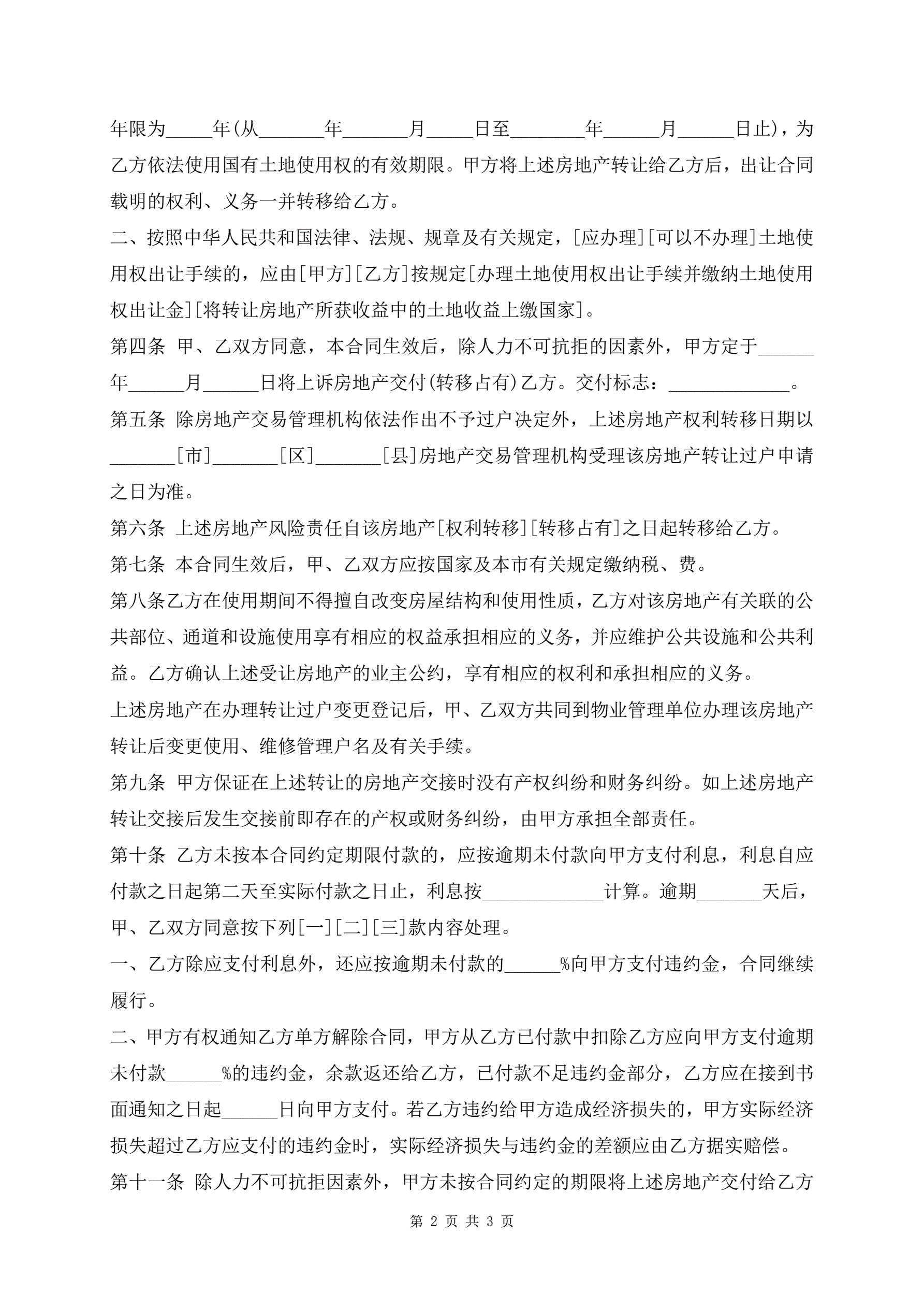 >上海市房地产买卖合同书样式通用版