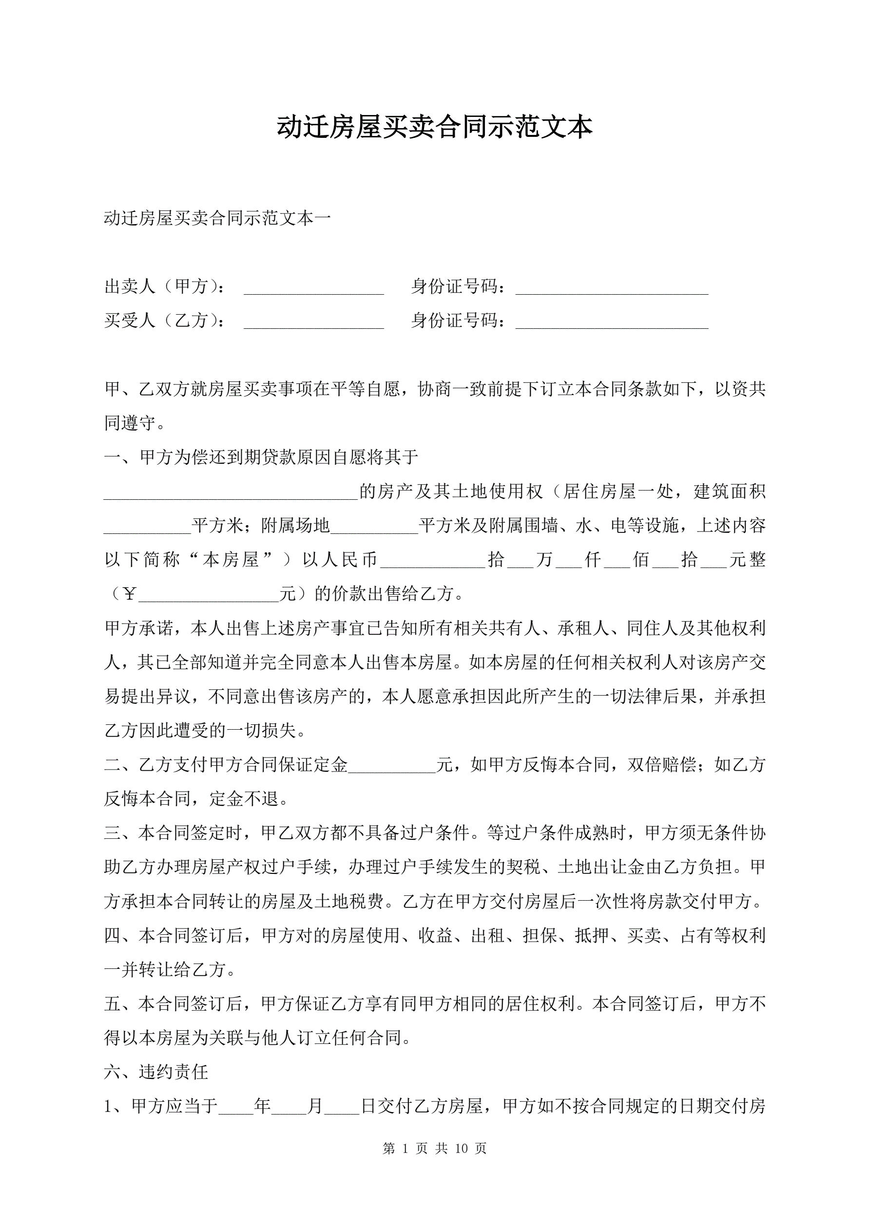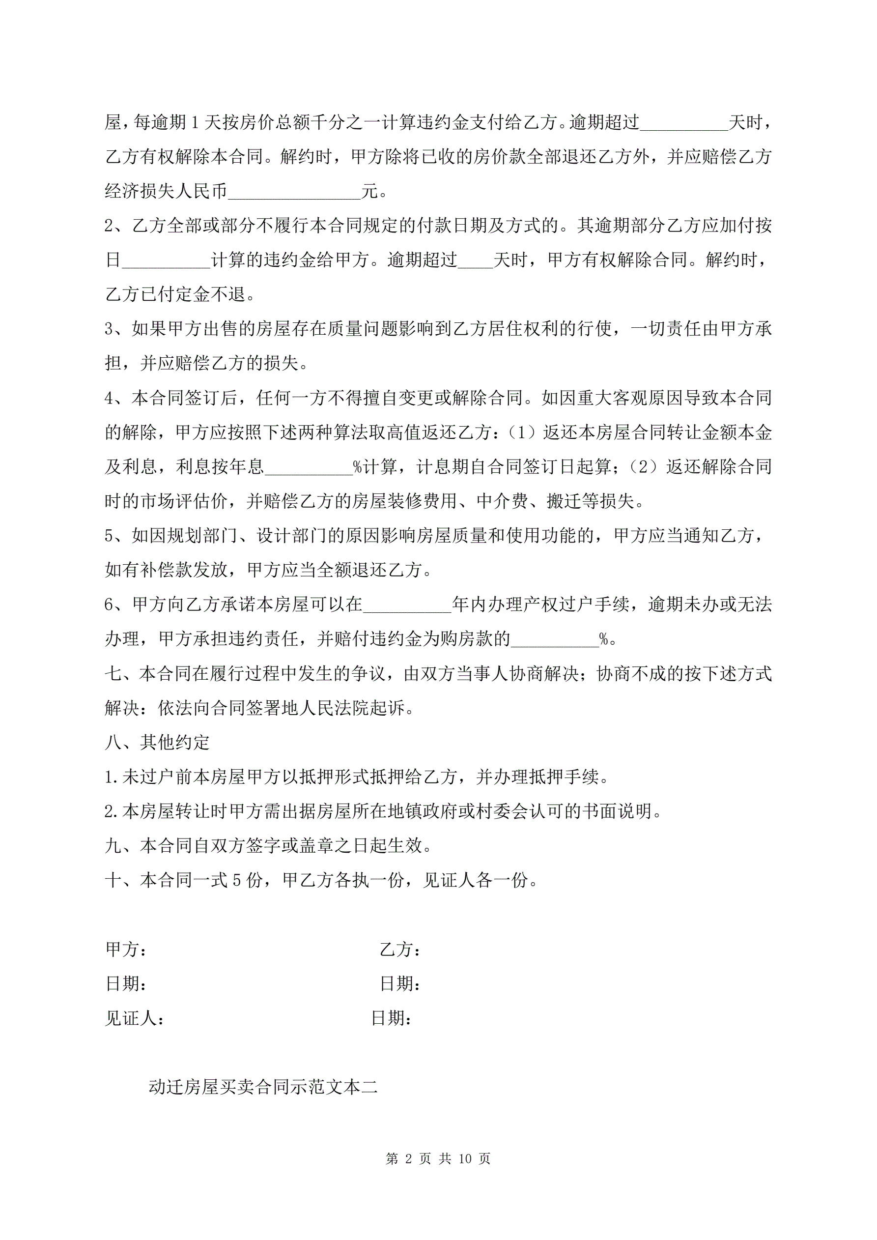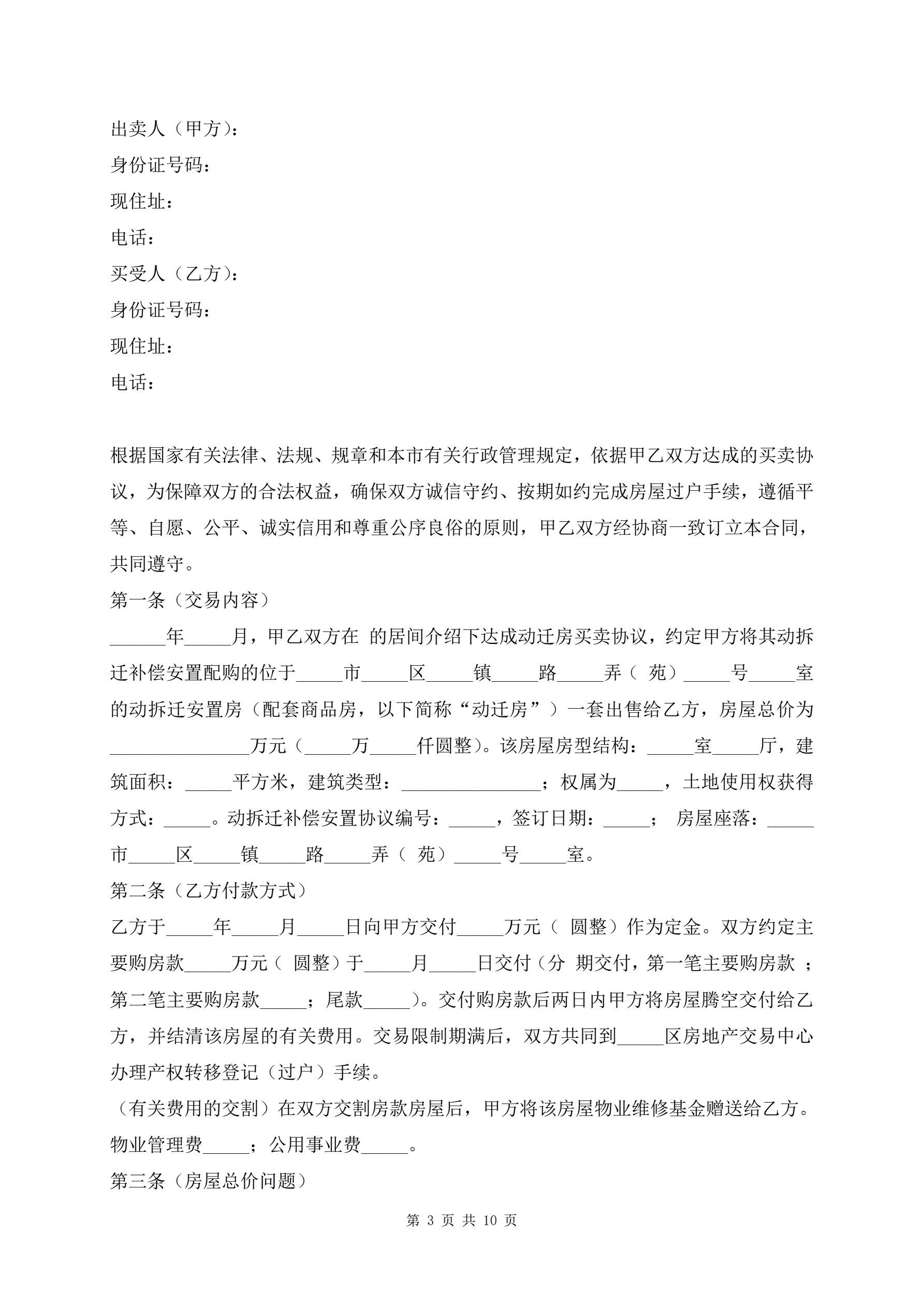 >动迁房屋买卖合同示范文本