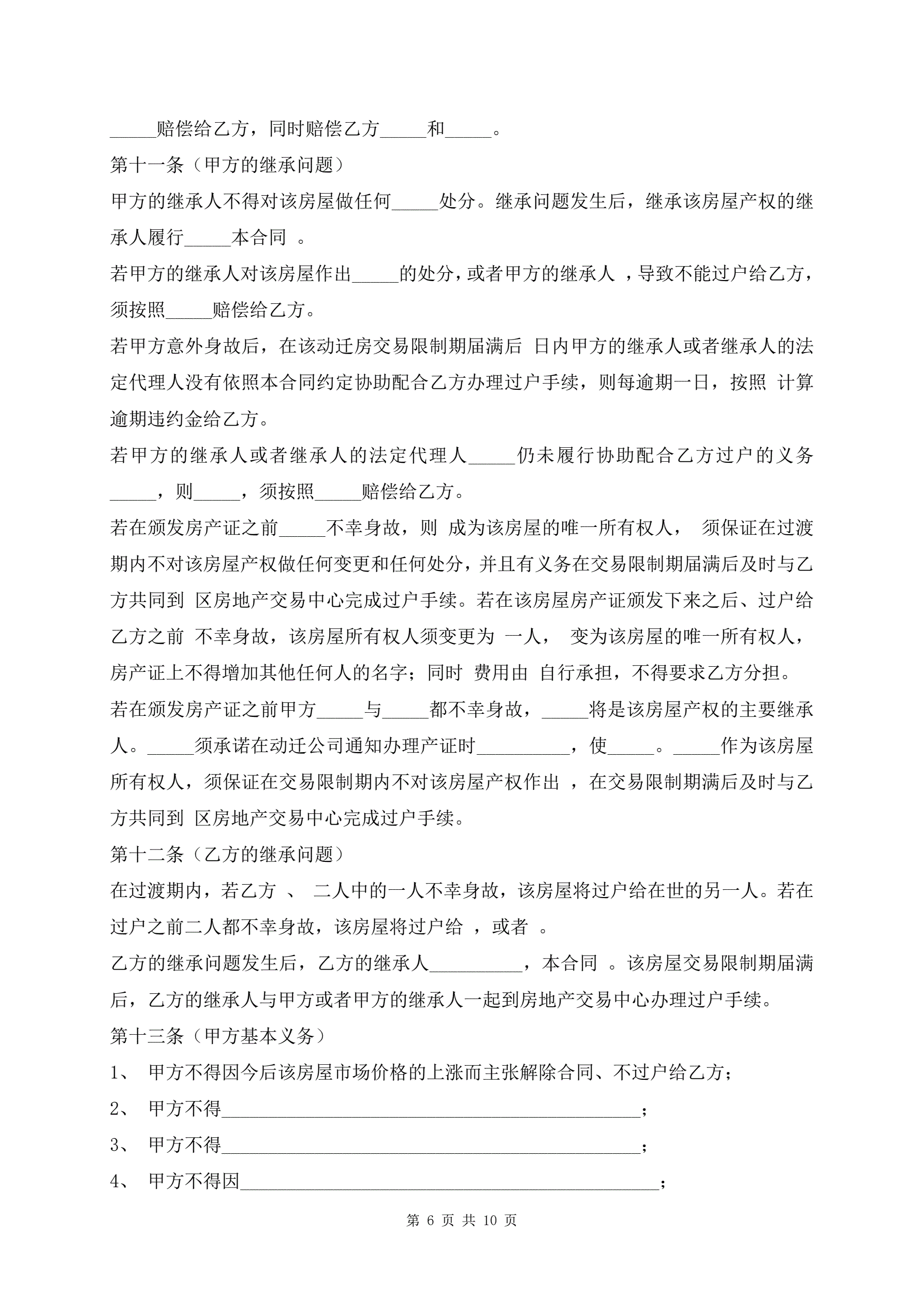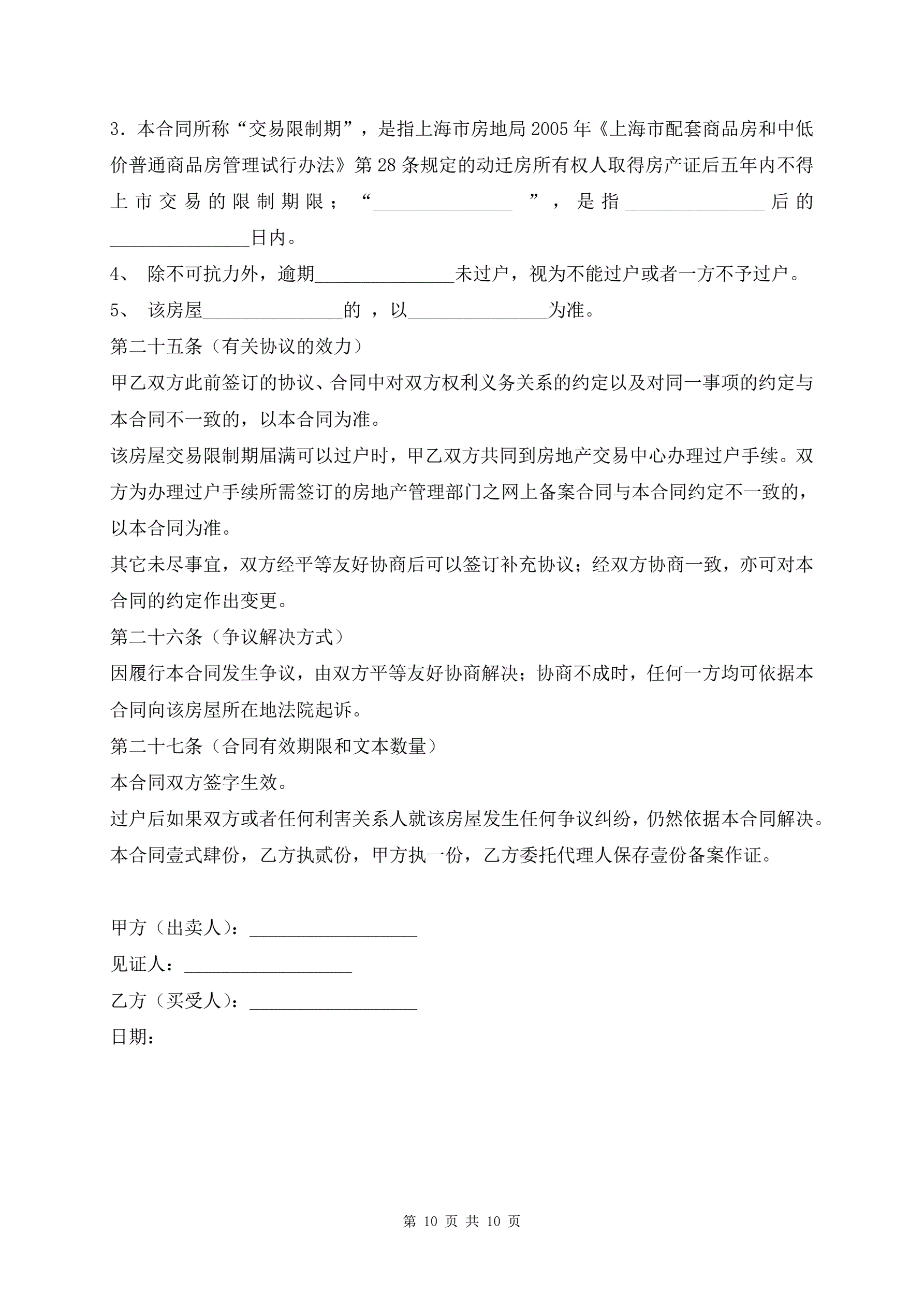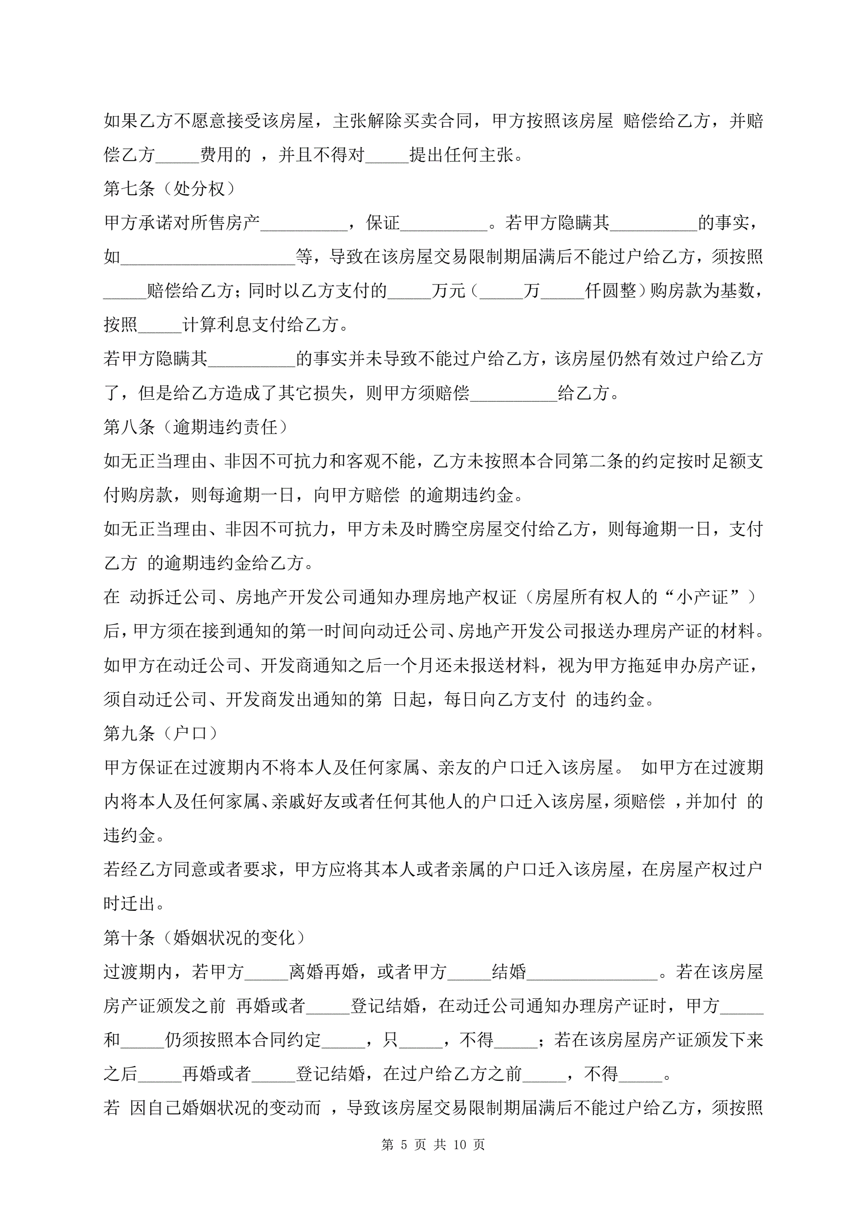 >动迁房屋买卖合同示范文本