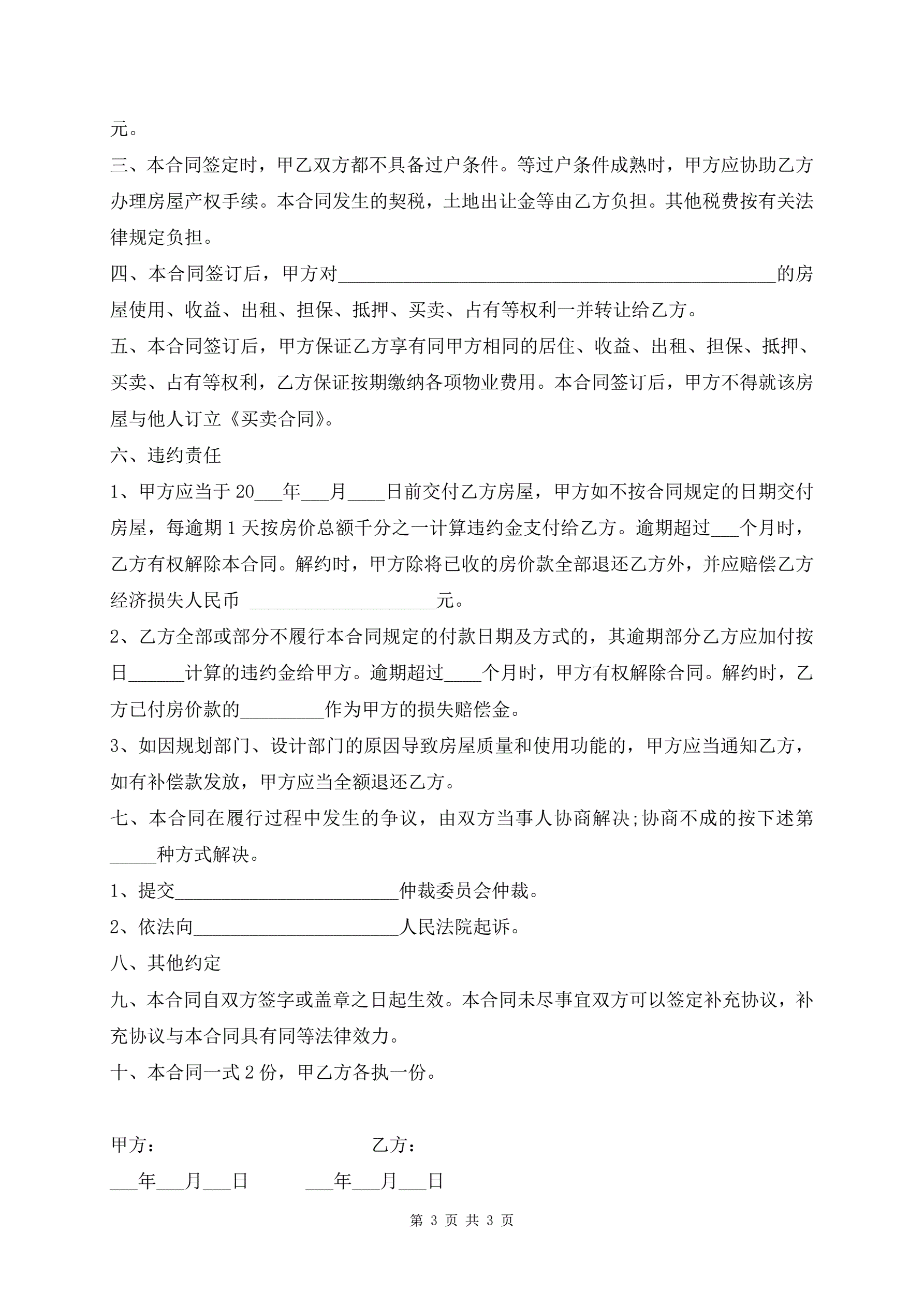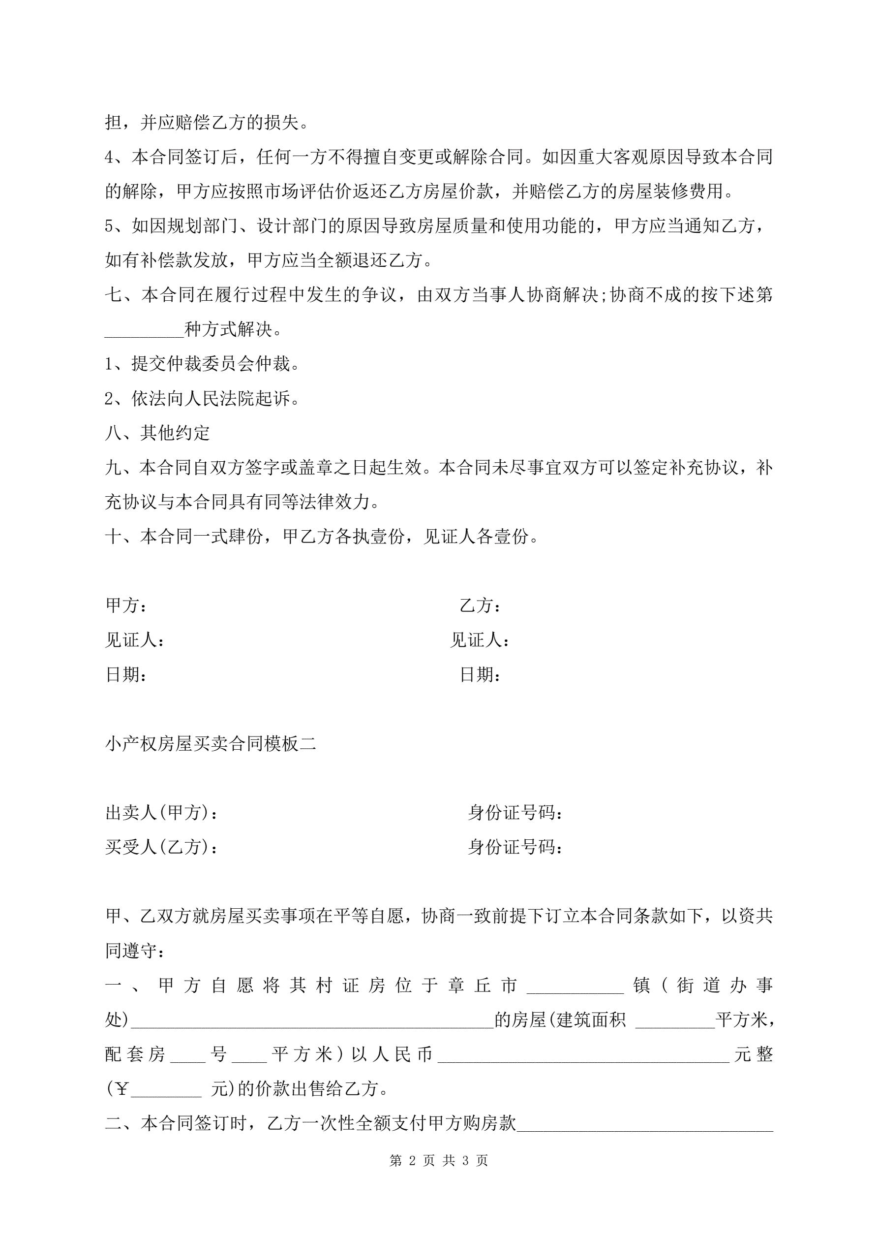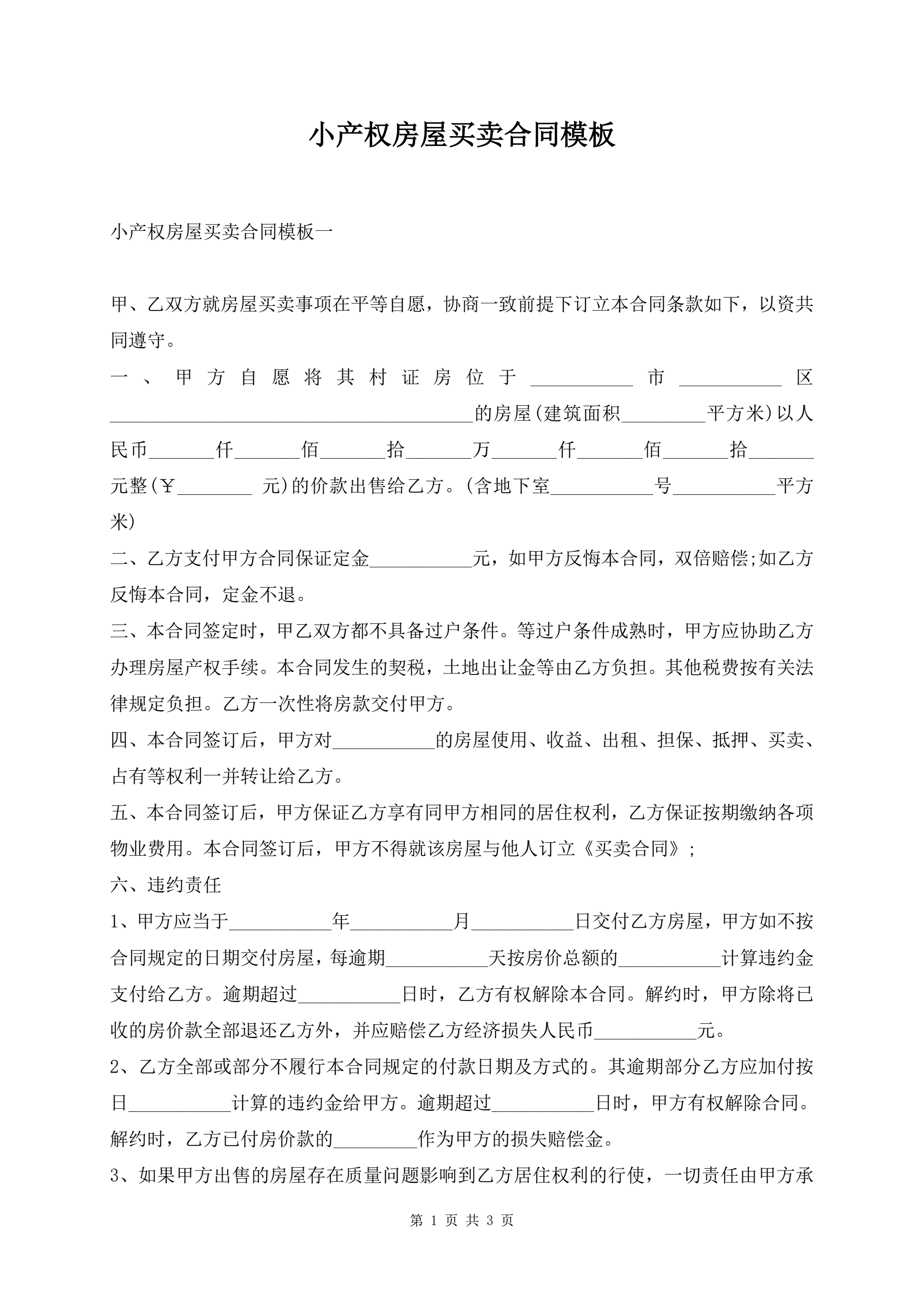 >小产权房屋买卖合同模板
