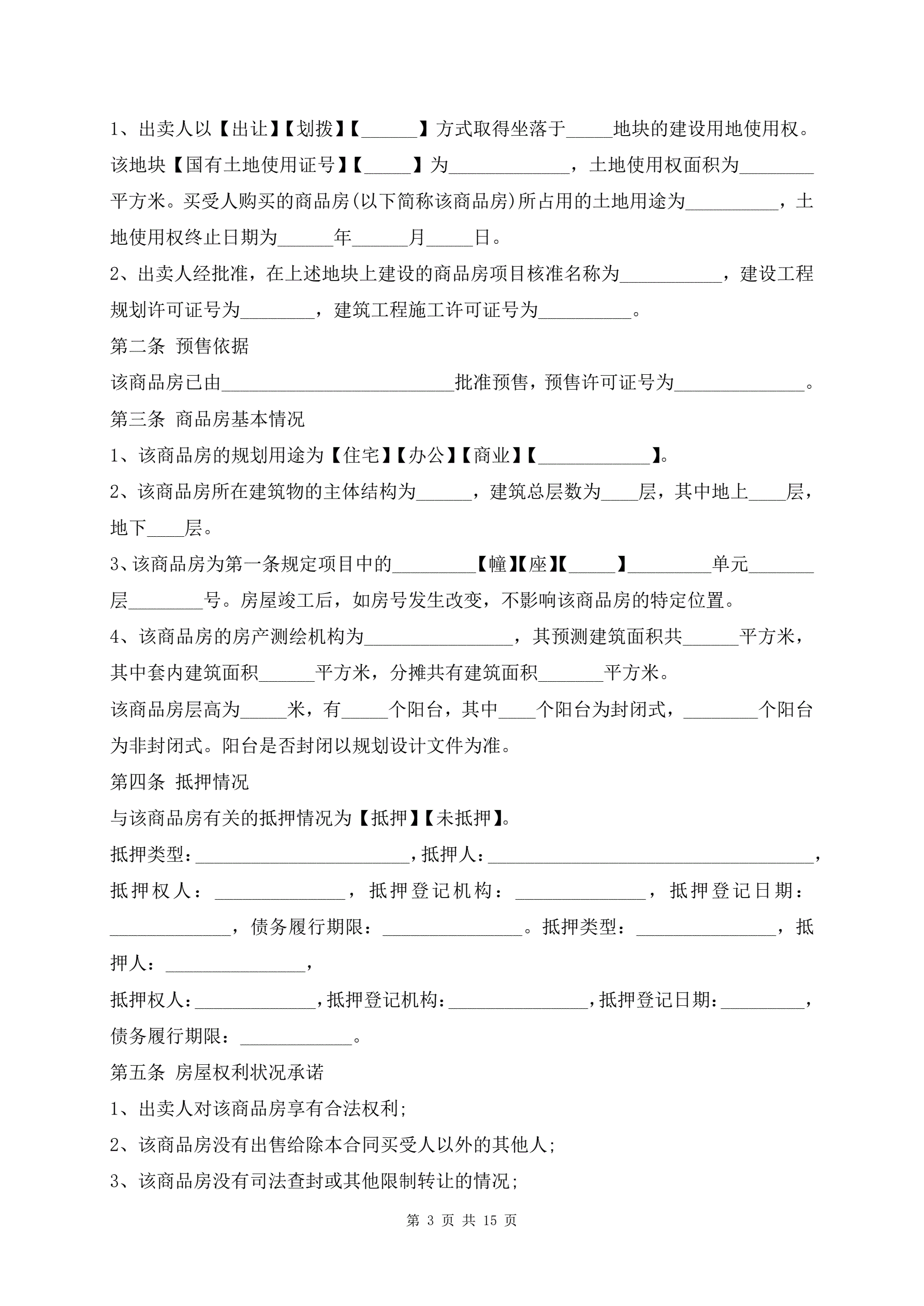 >四川省商品房买卖合同范本(预售)
