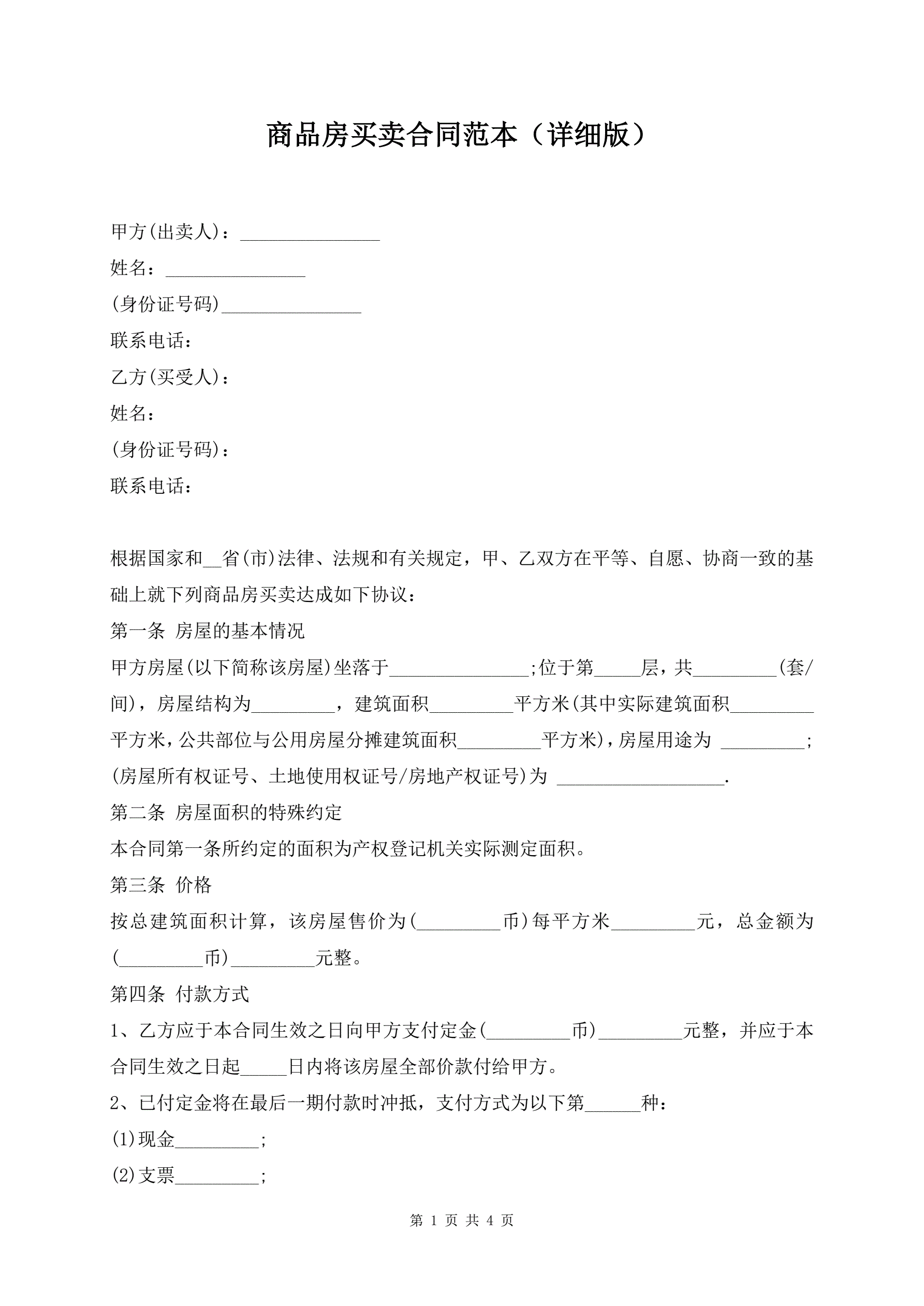 商品房买卖合同范本(详细版)