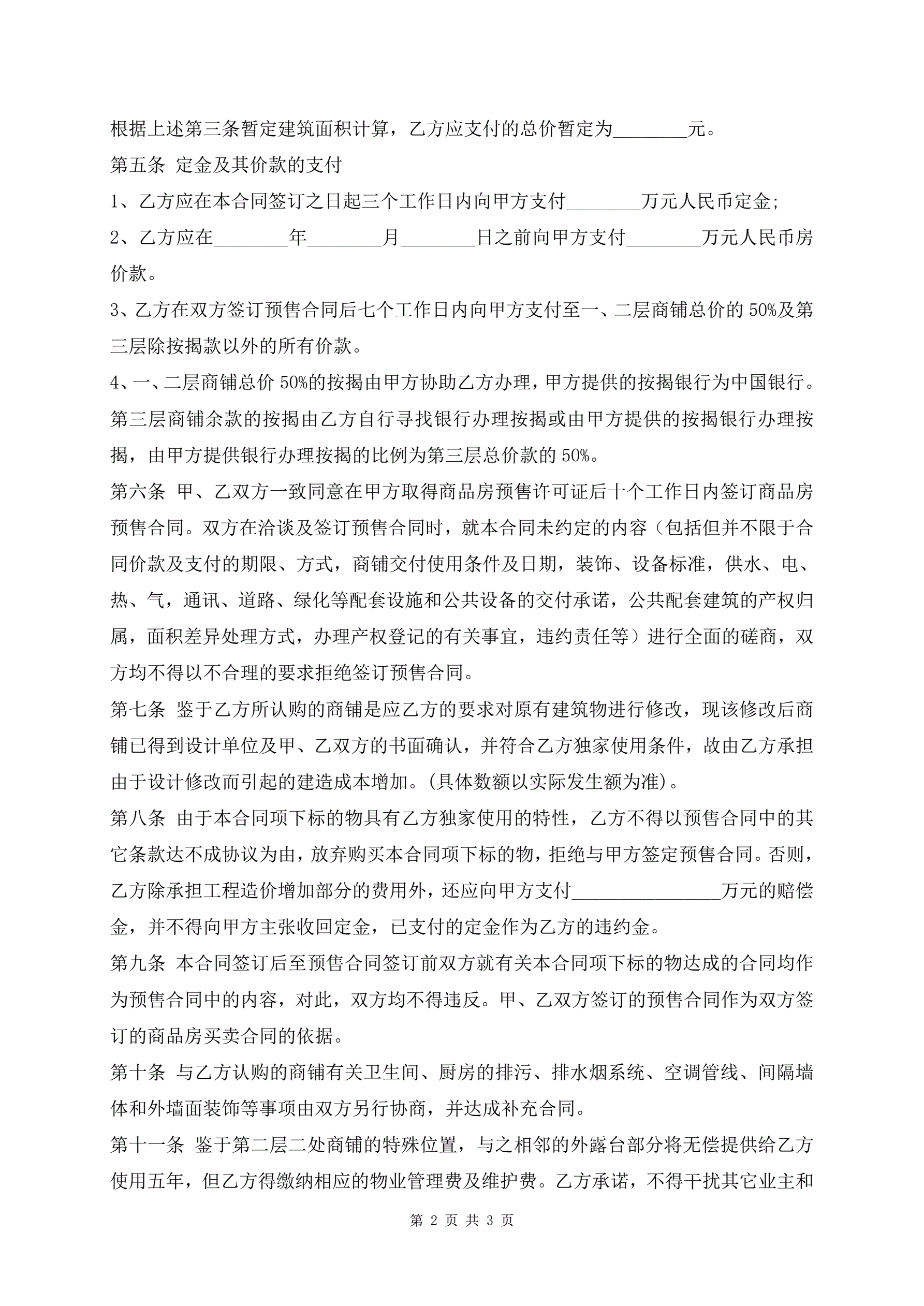 商铺认购协议书详细版
