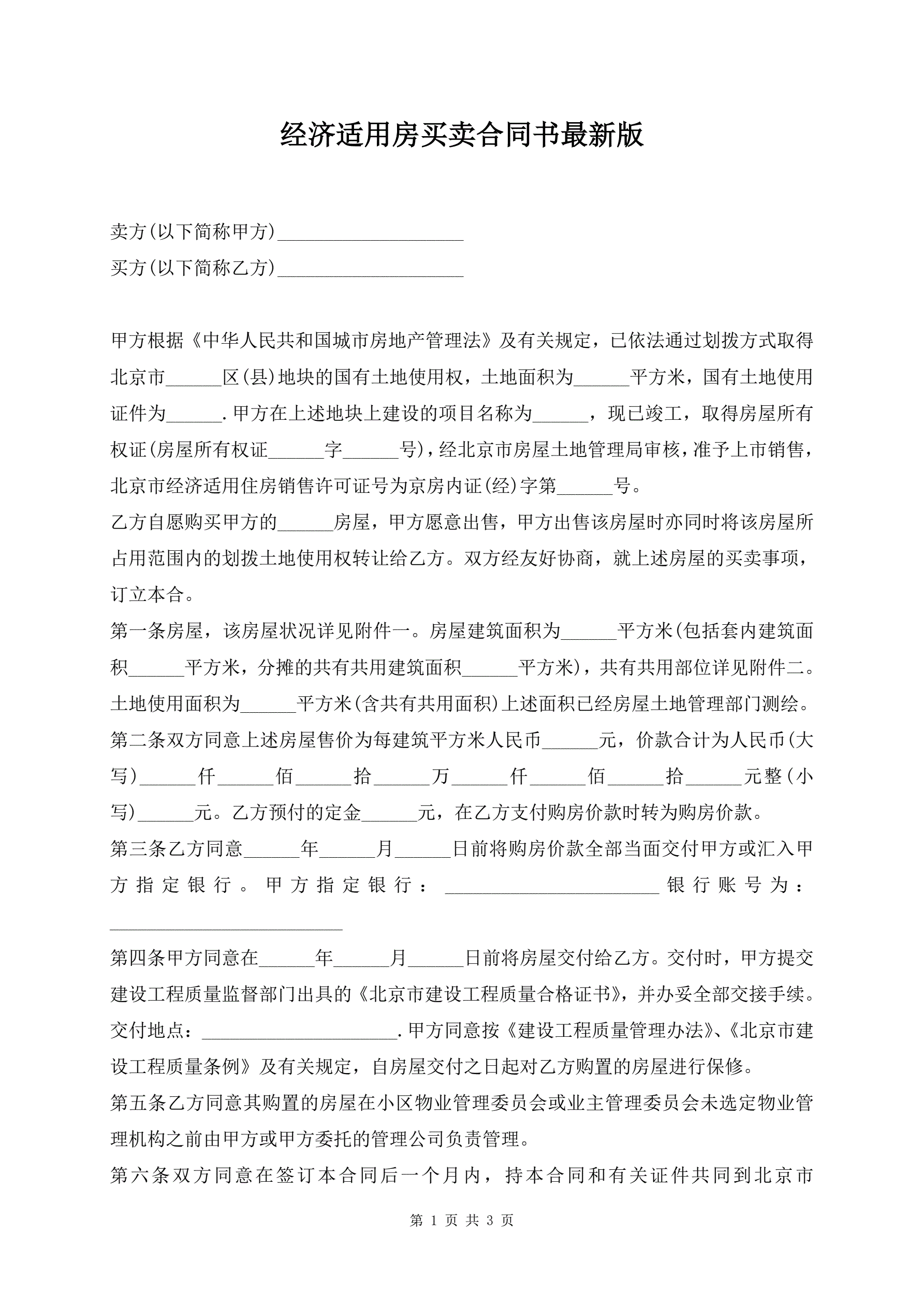 >经济适用房买卖合同书最新版