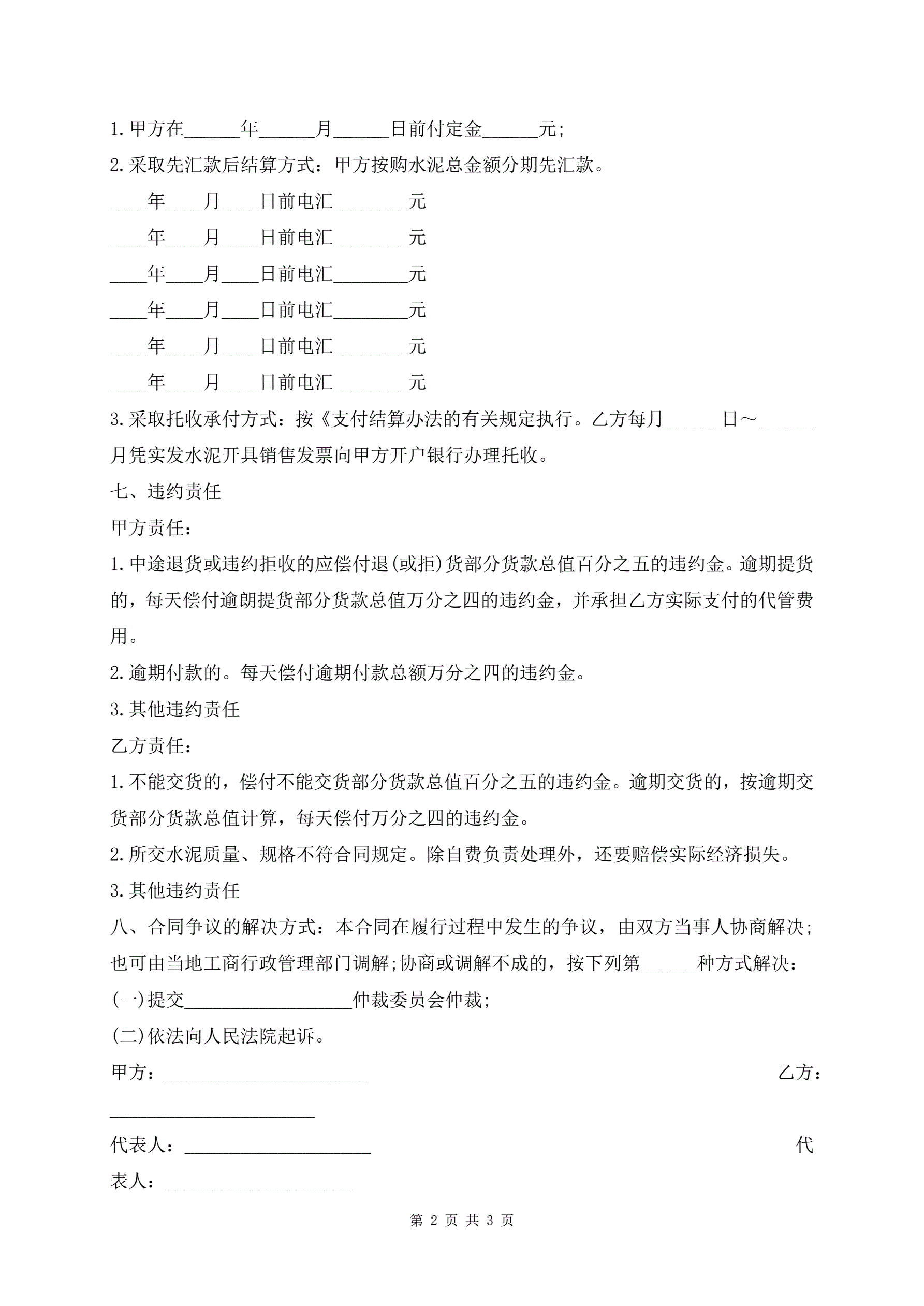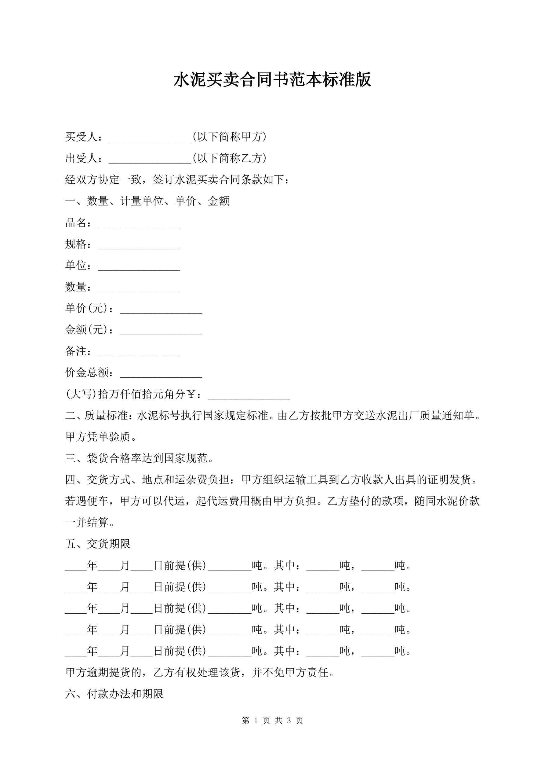 水泥买卖合同书范本标准版
