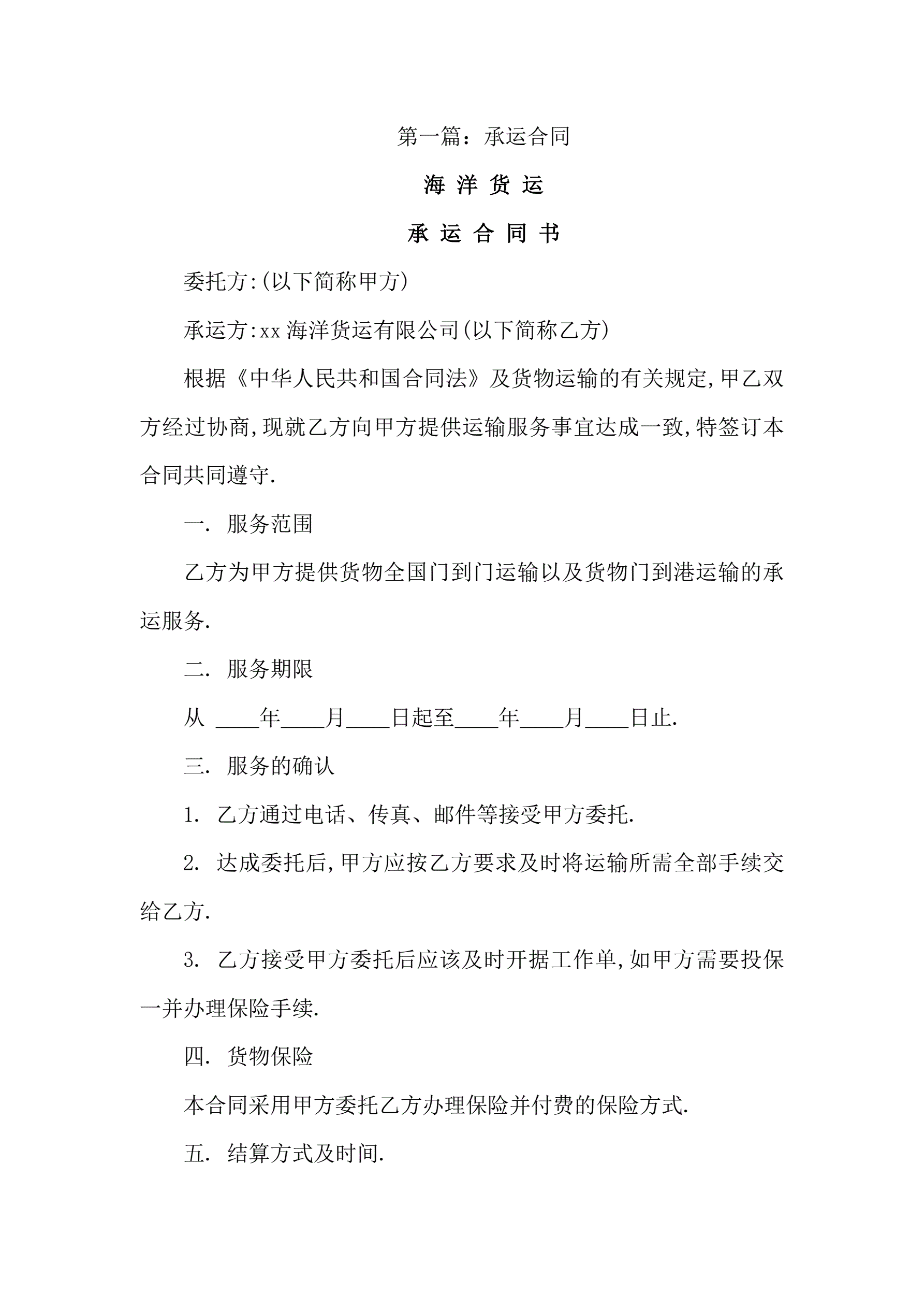 承运合同五篇
