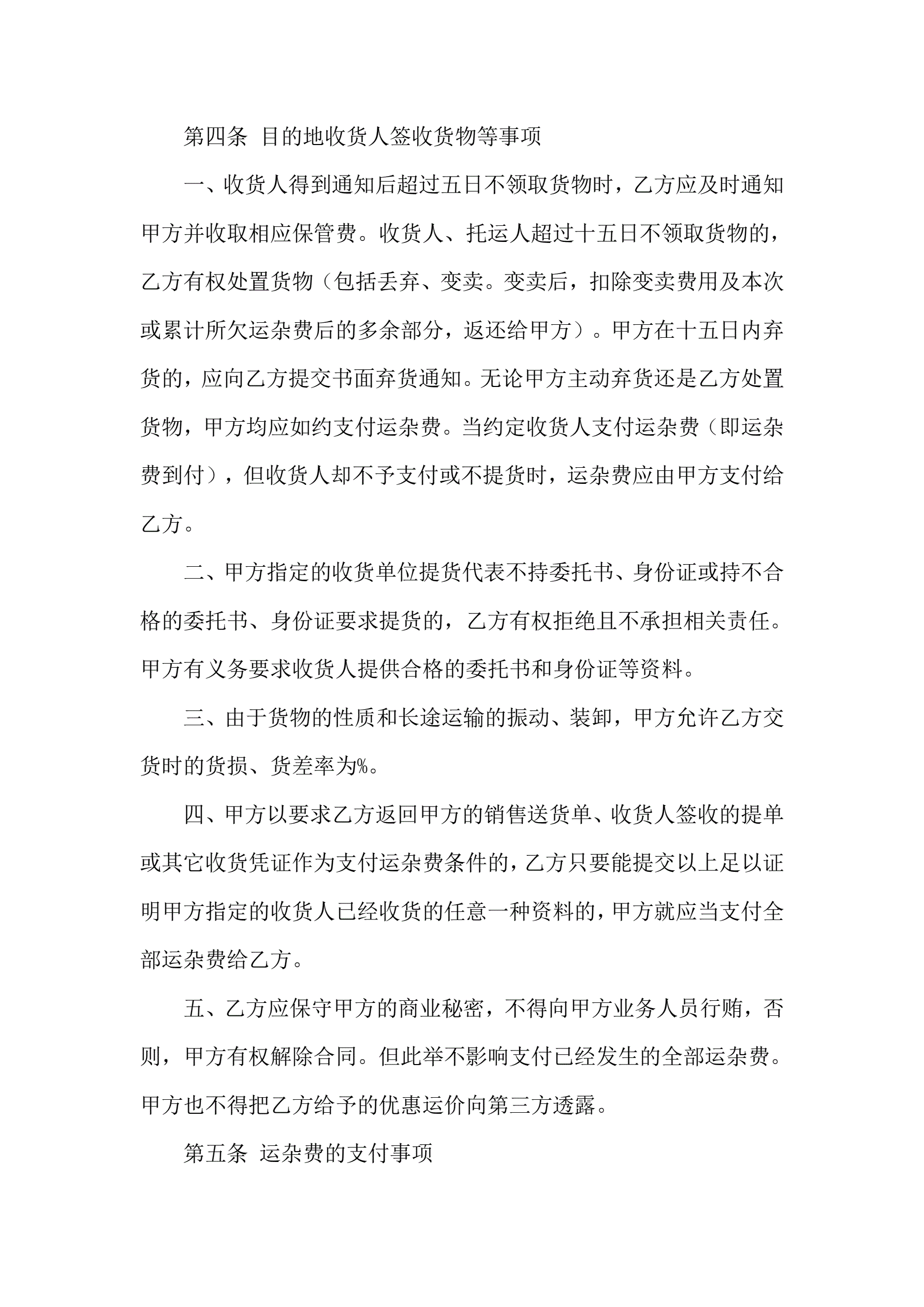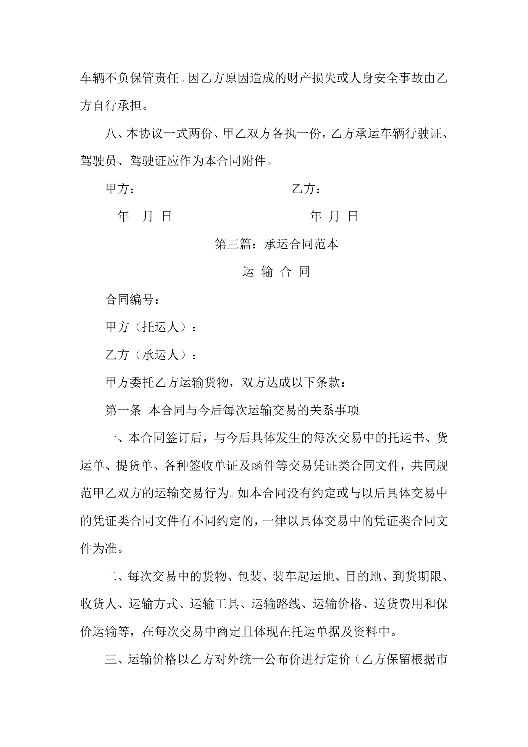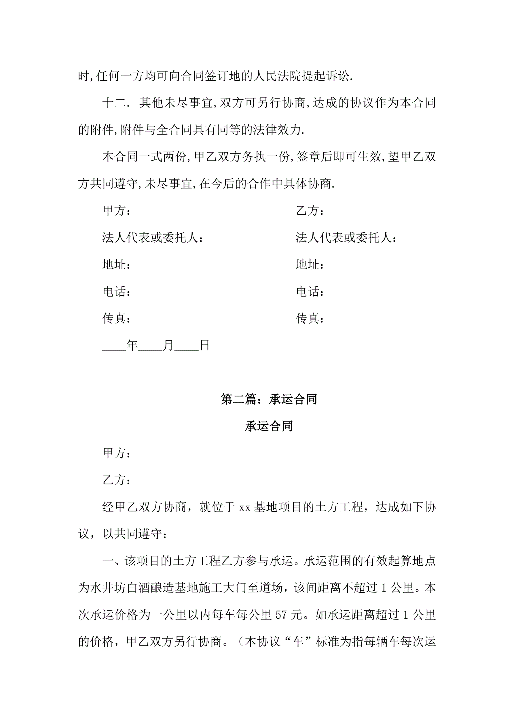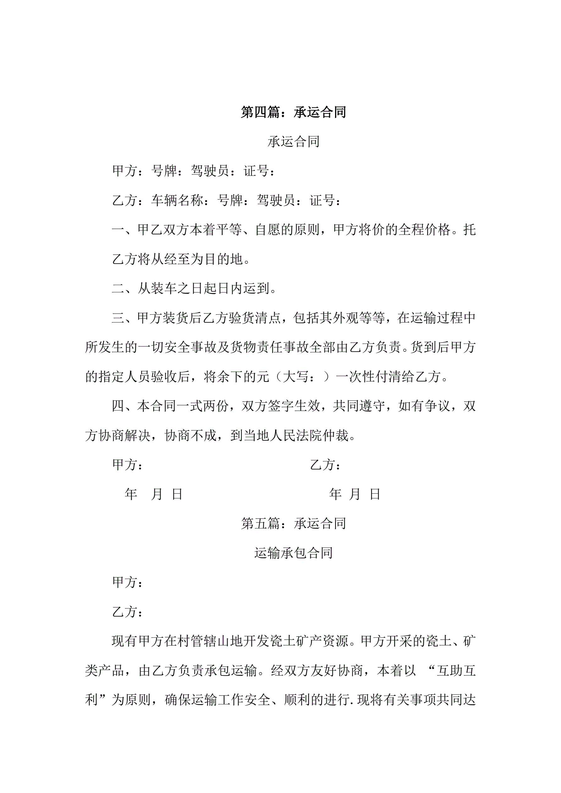 >承运合同五篇