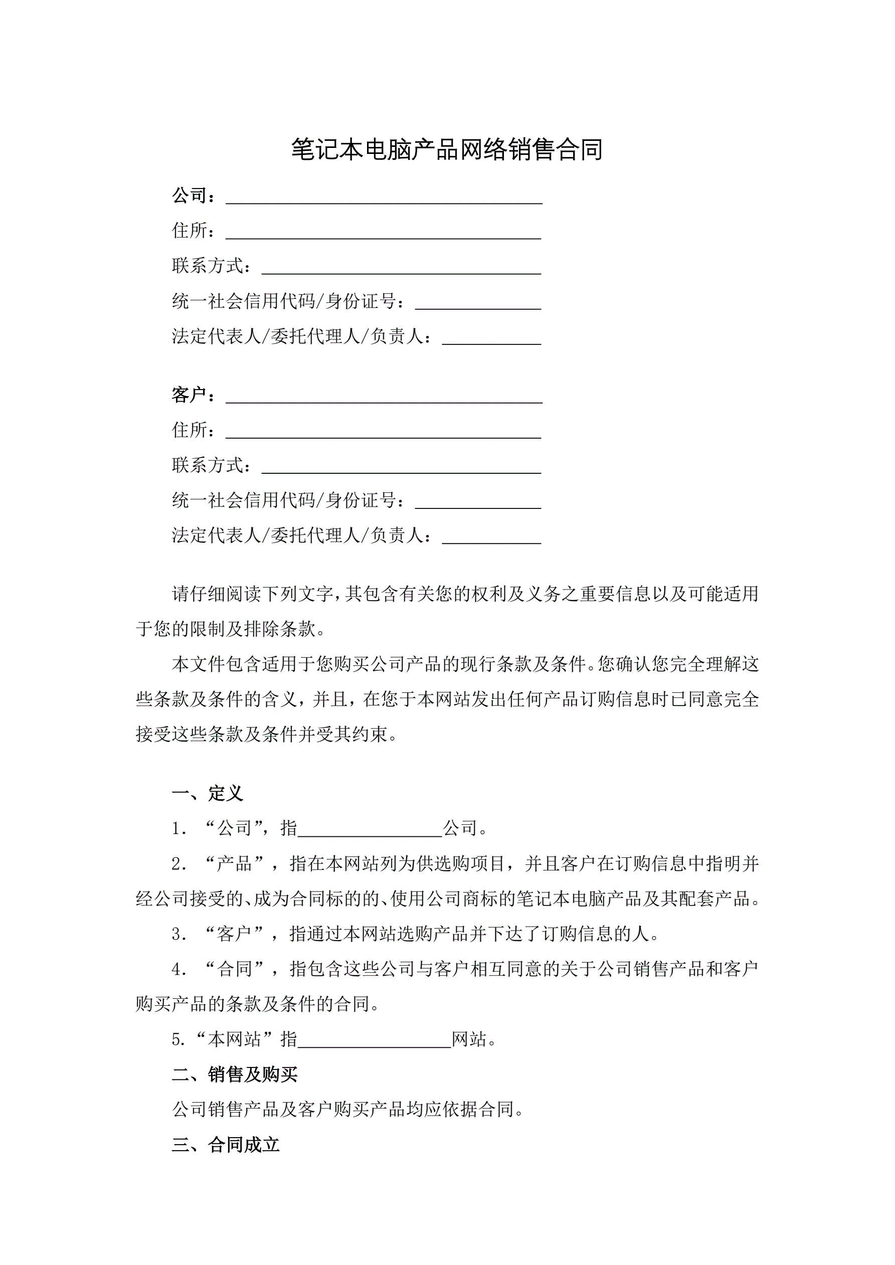 >笔记本电脑产品网络销售合同