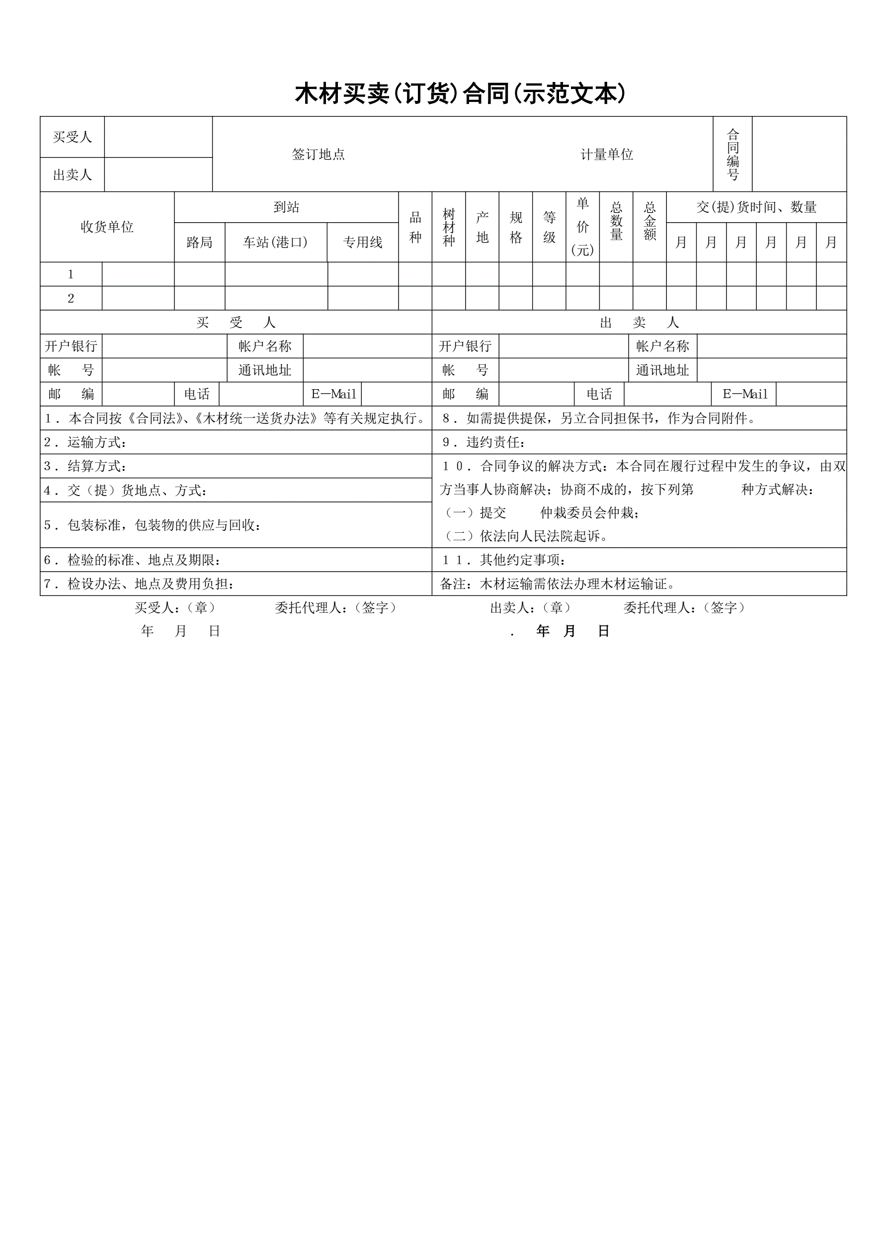木材买卖(订货)合同(示范文本)