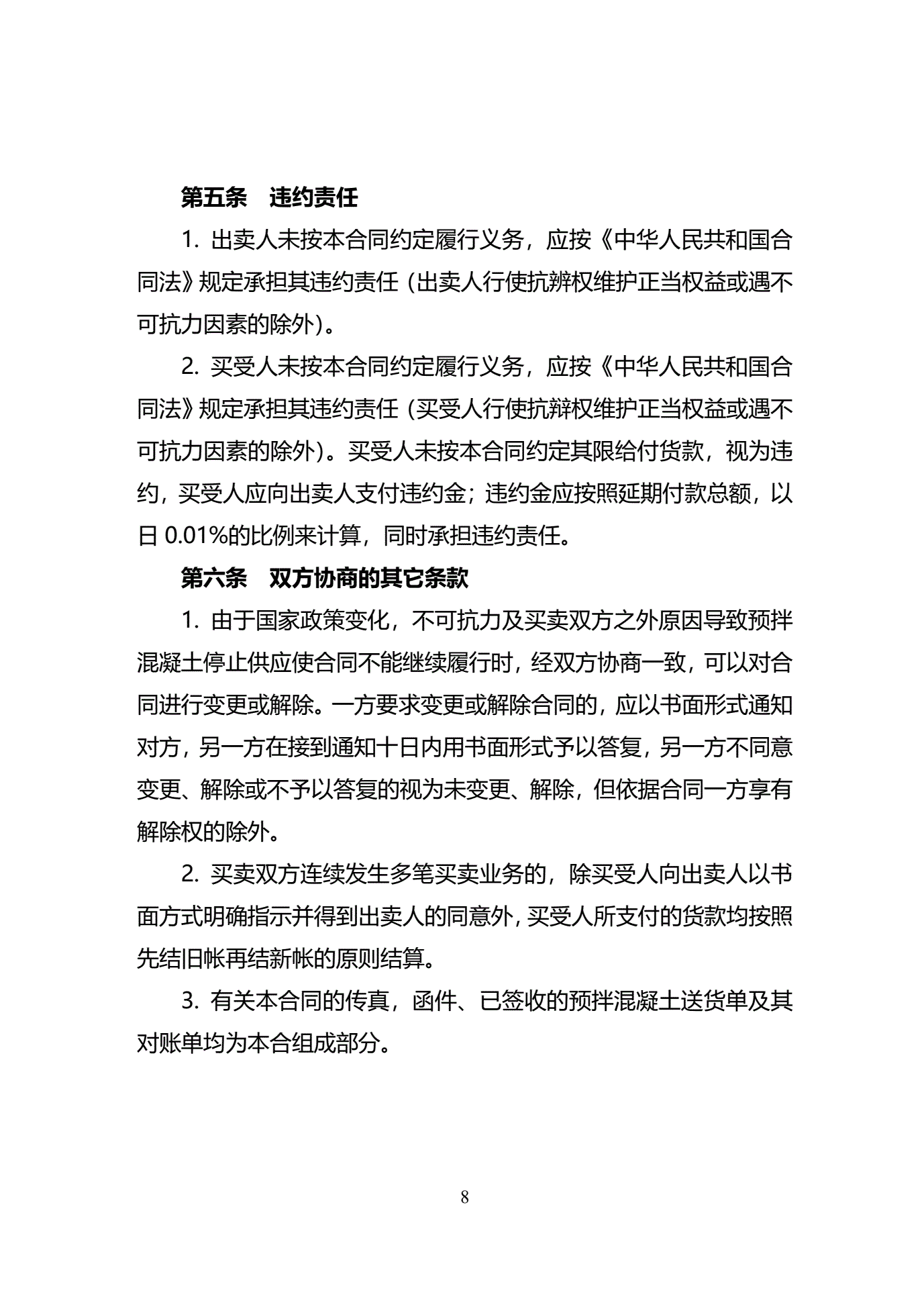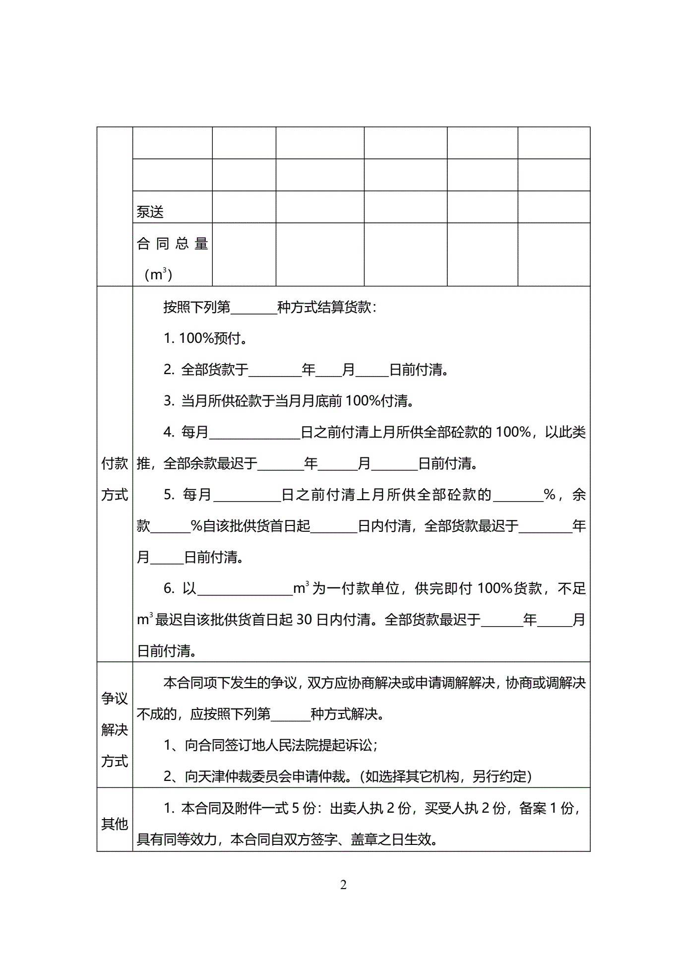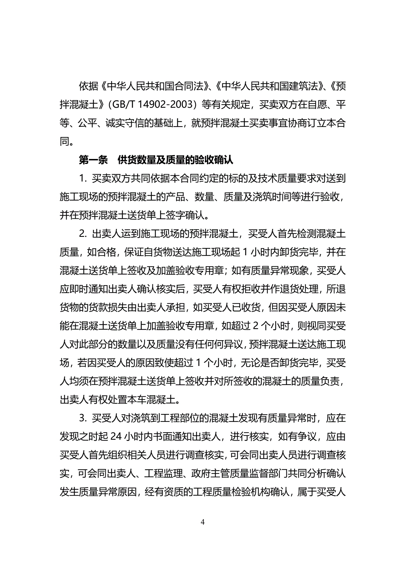 >天津市预拌混凝土买卖合同