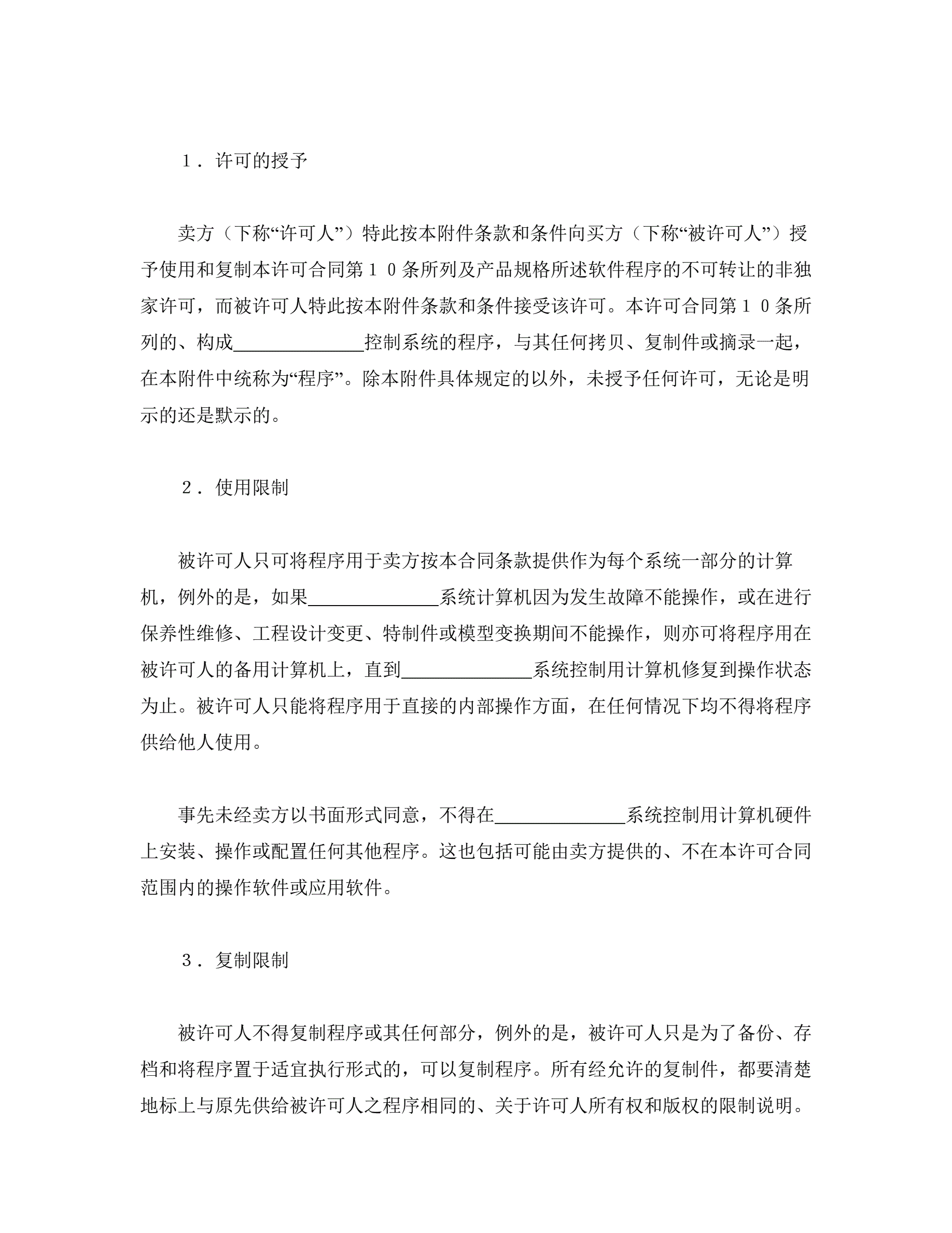 国际计算机软件许可合同格式