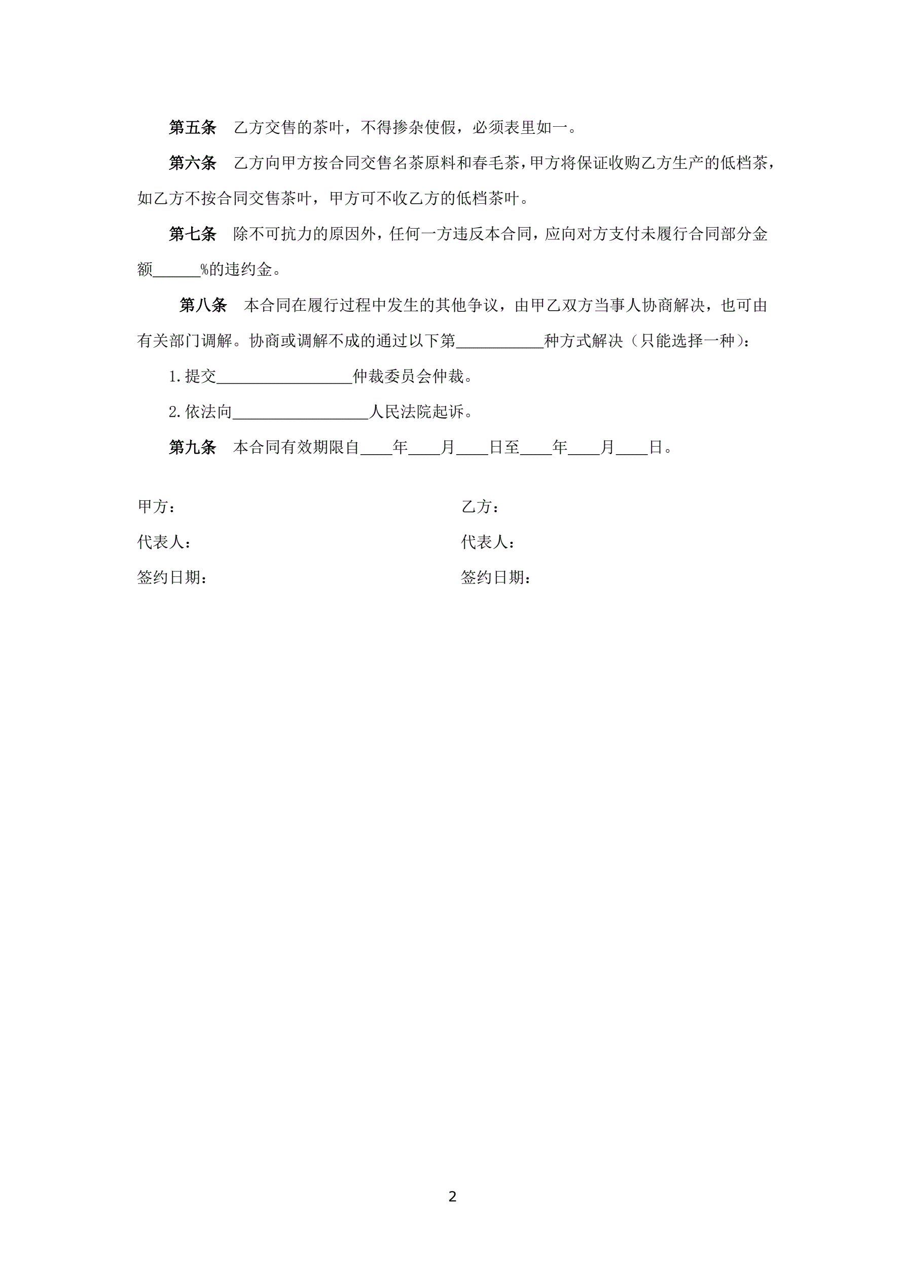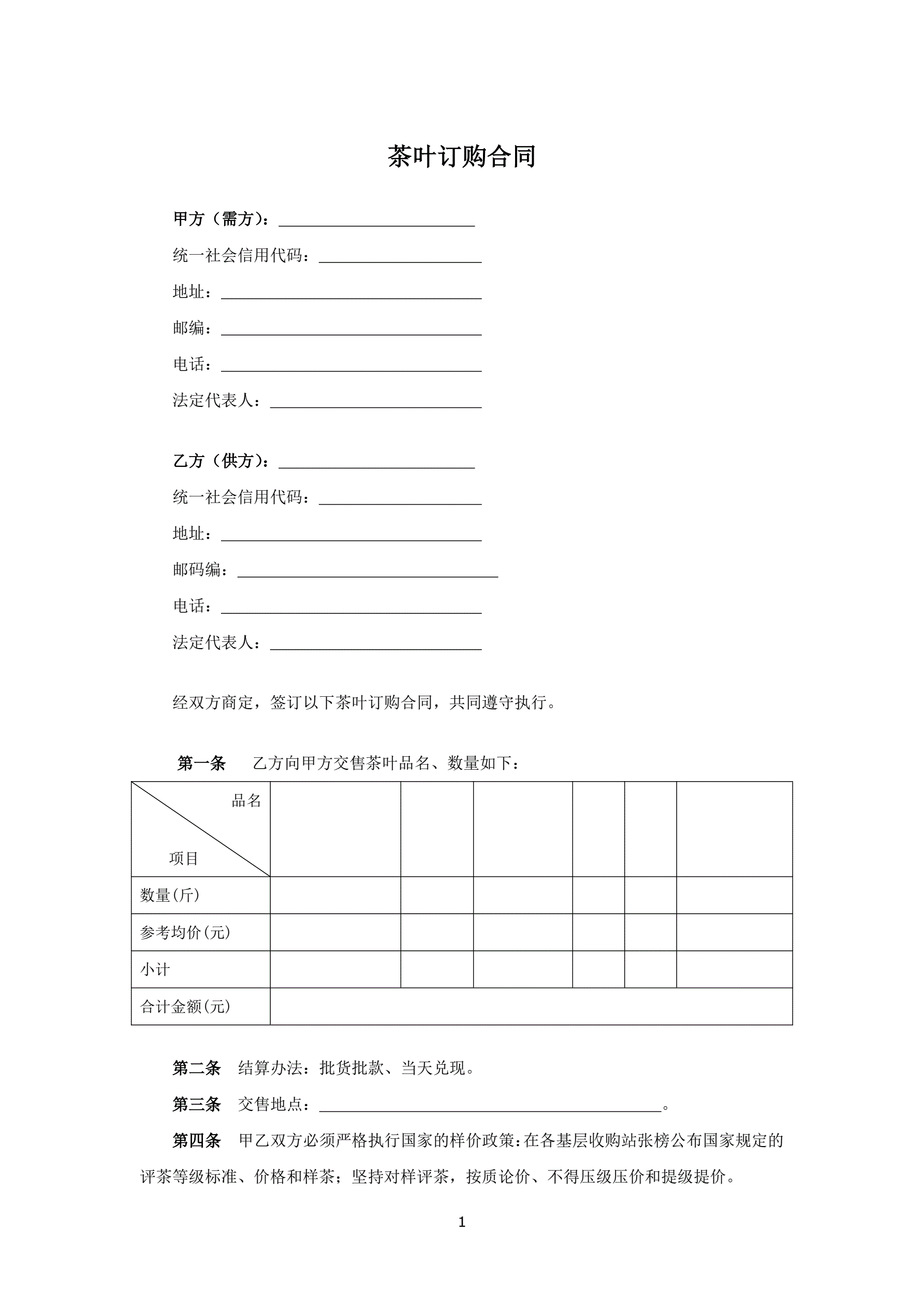 茶叶订购合同