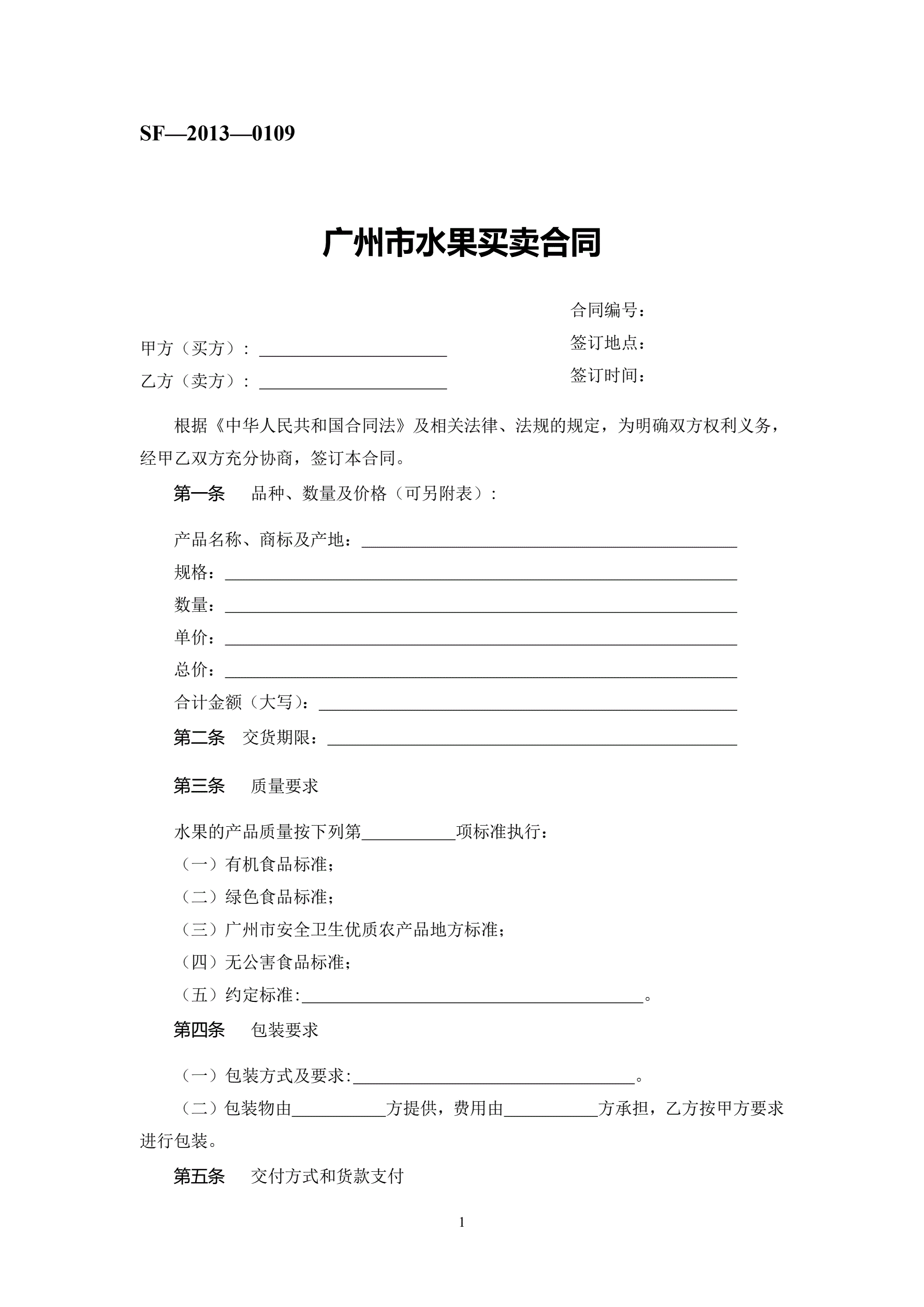 >广州市水果买卖合同