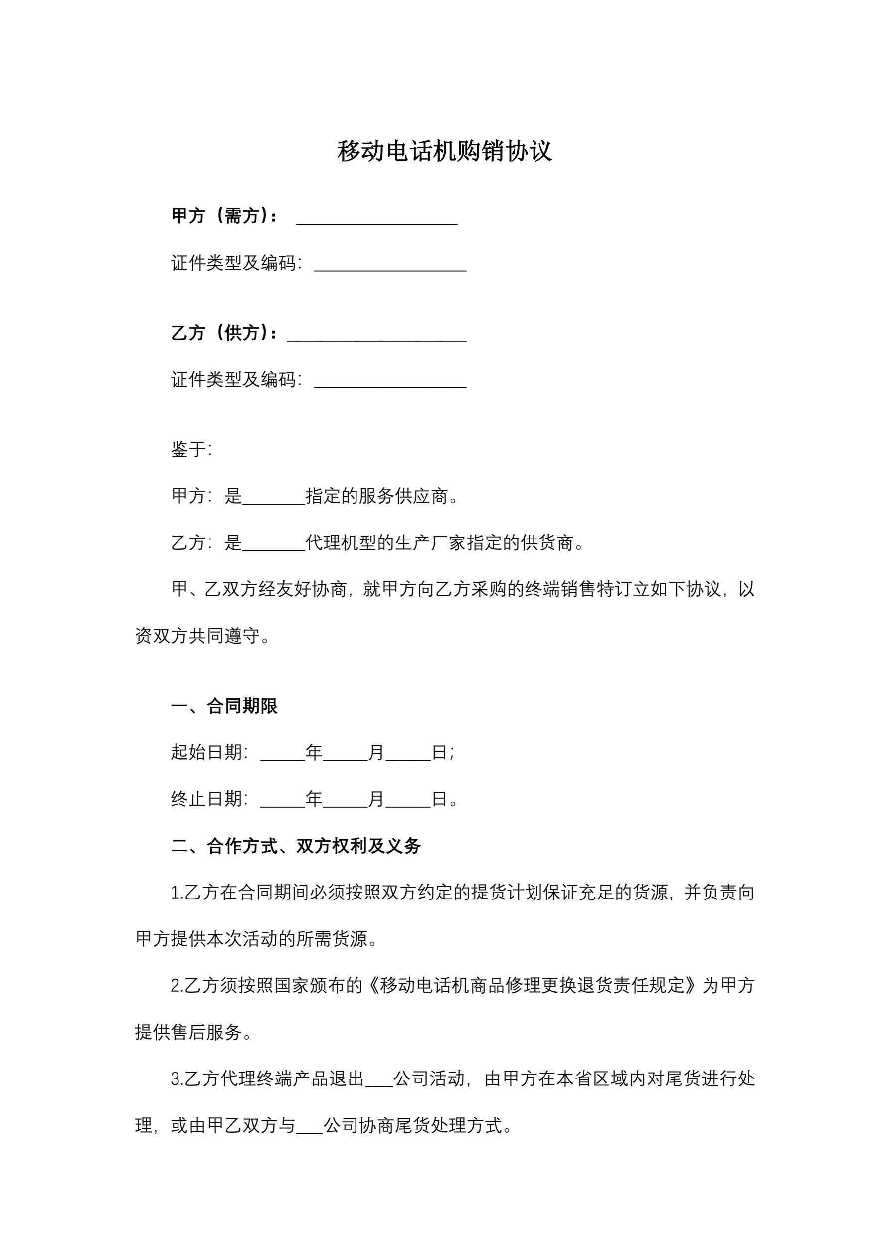移动电话机购销协议