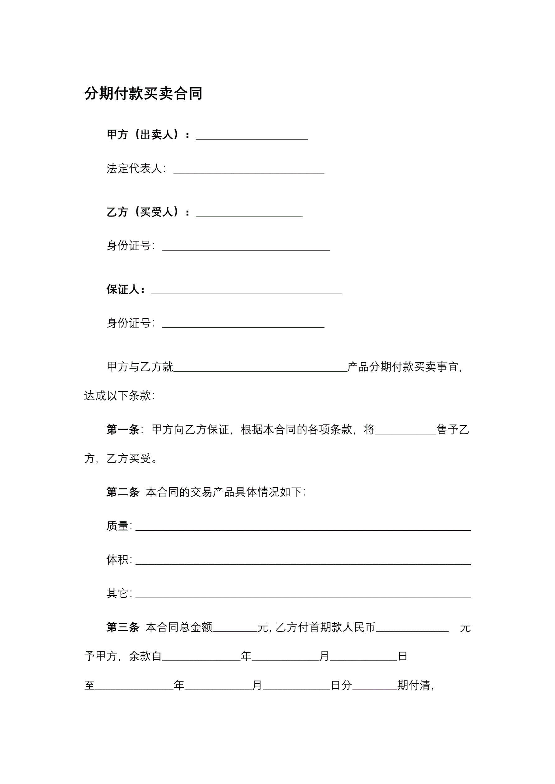 >分期付款买卖合同