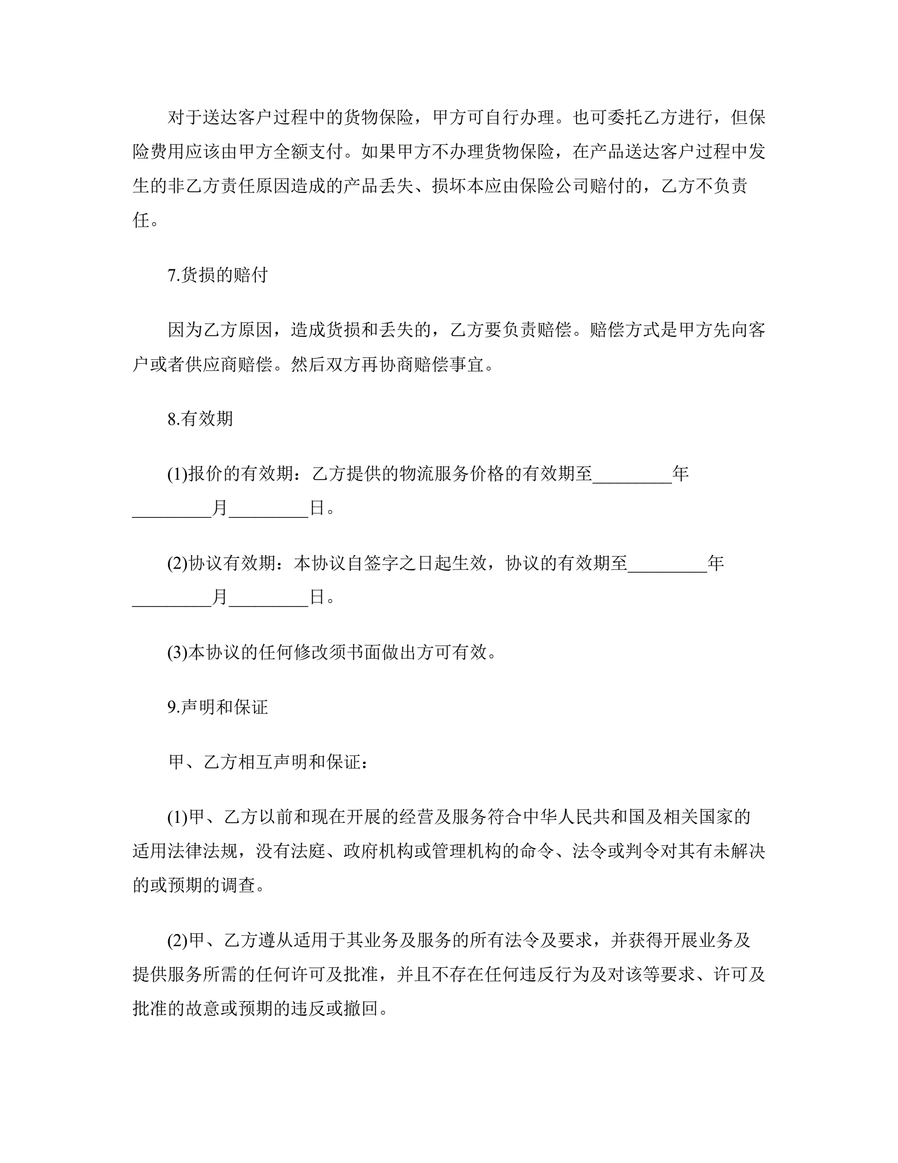 物流合作协议书范本