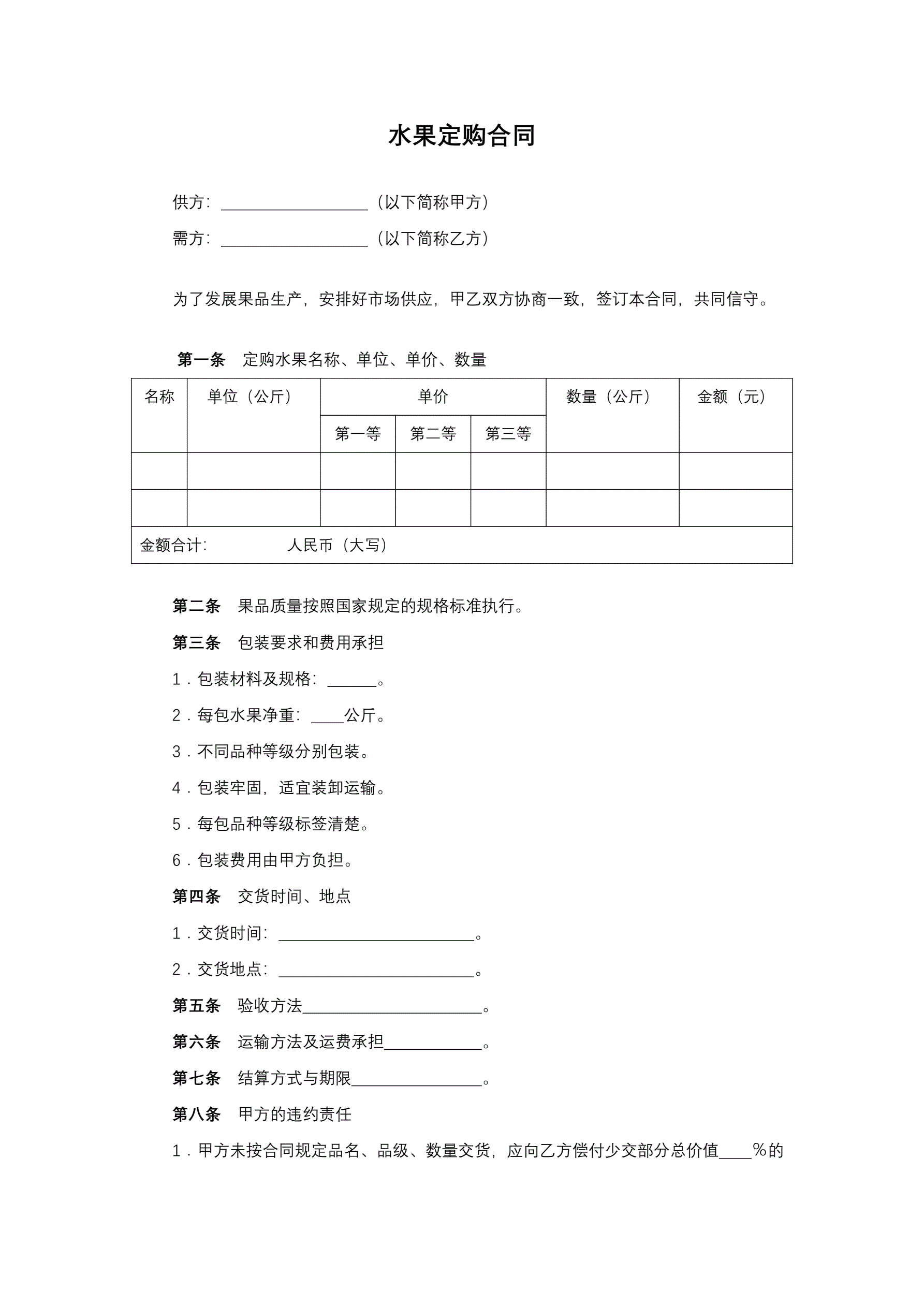 合同名称:水果定购合同