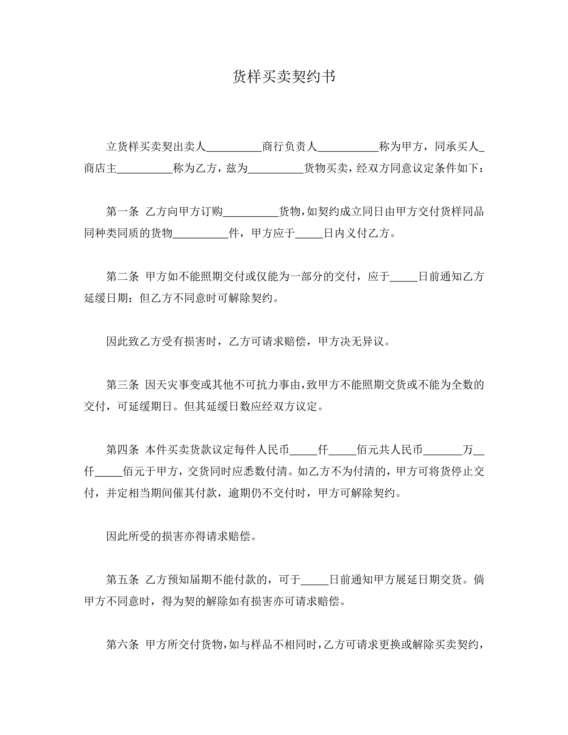合同名称:货样买卖契约书