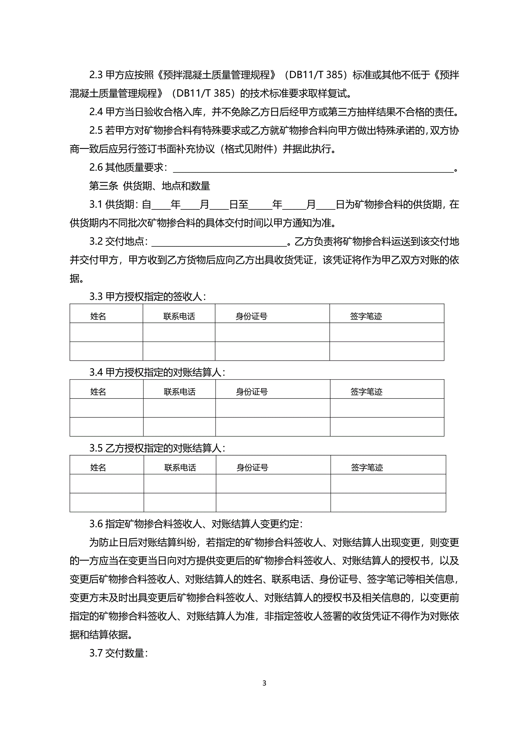 >北京市预拌混凝土矿物掺合料采购合同