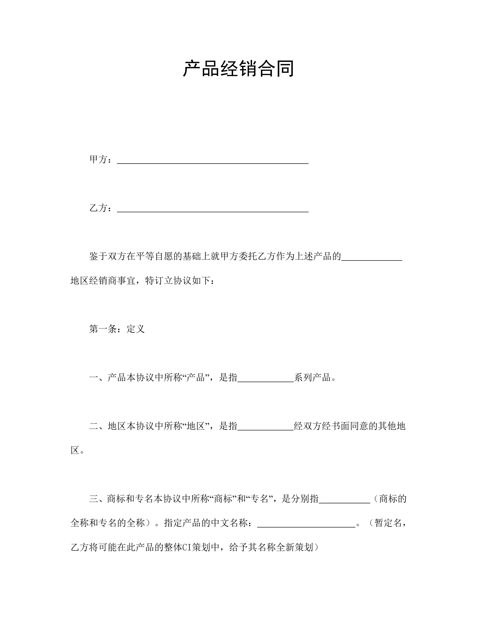 合同名称:产品经销合同