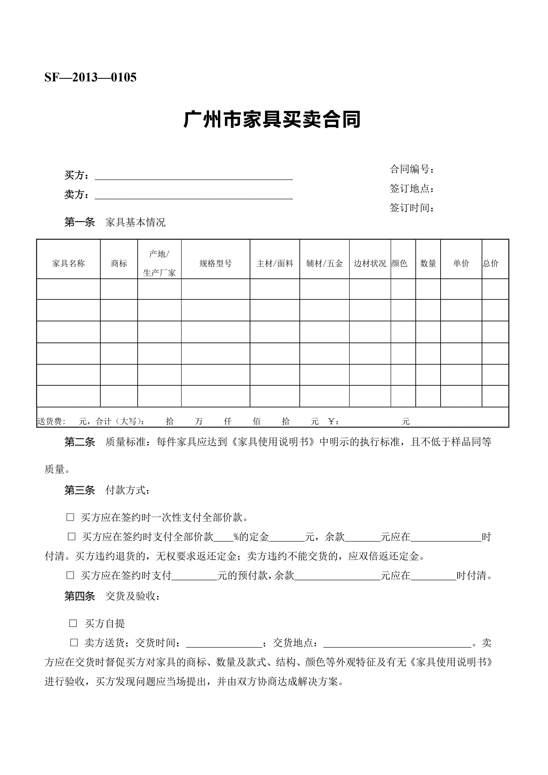 >广州市家具买卖合同