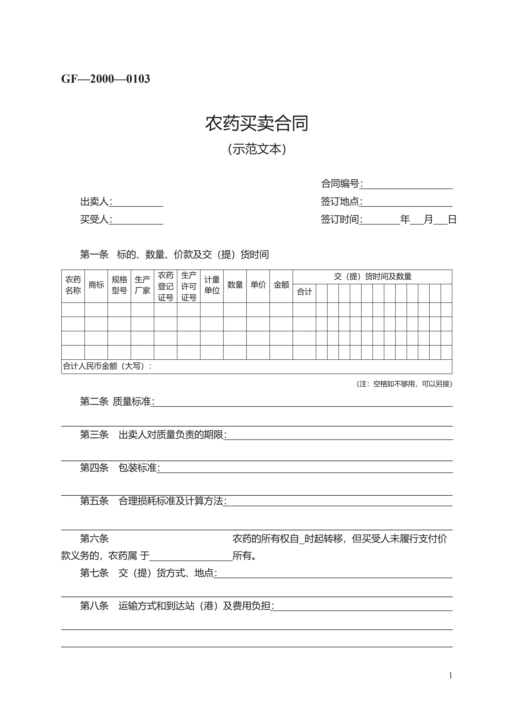 >农药买卖合同 GF—2000—0103