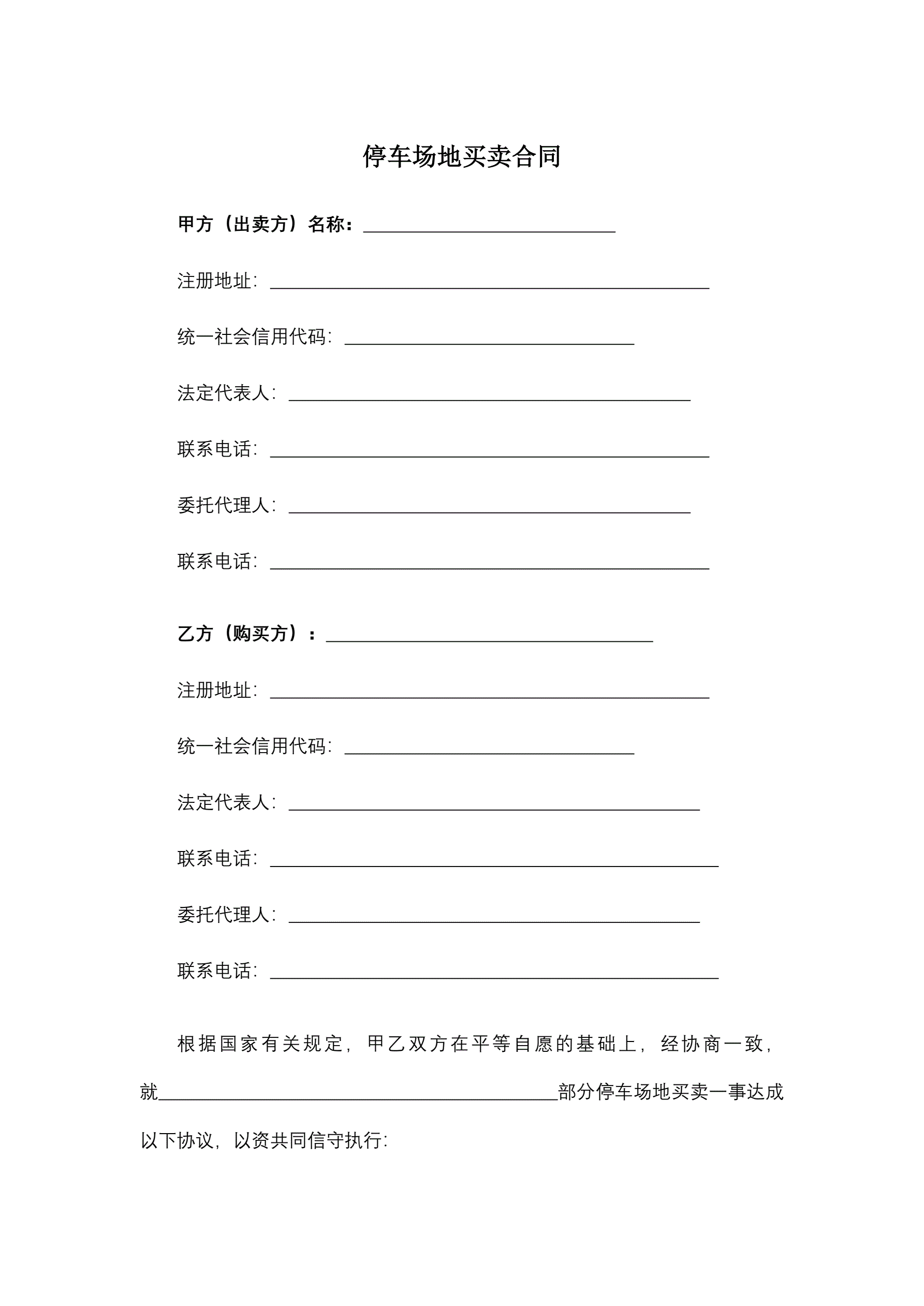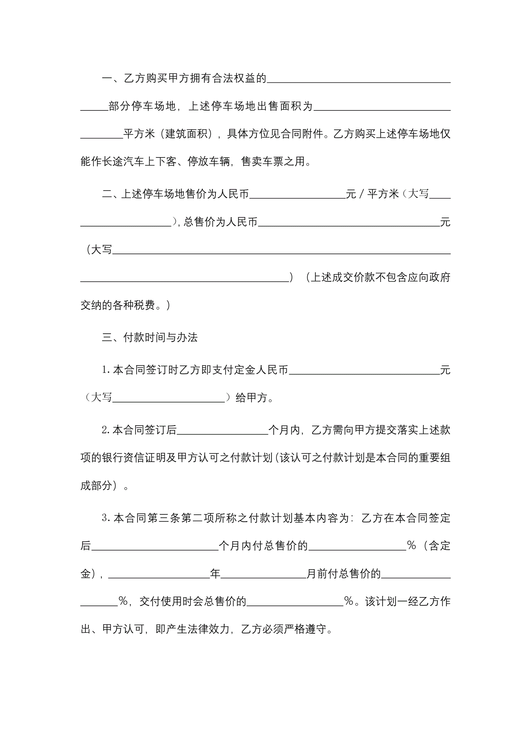 停车场地买卖合同