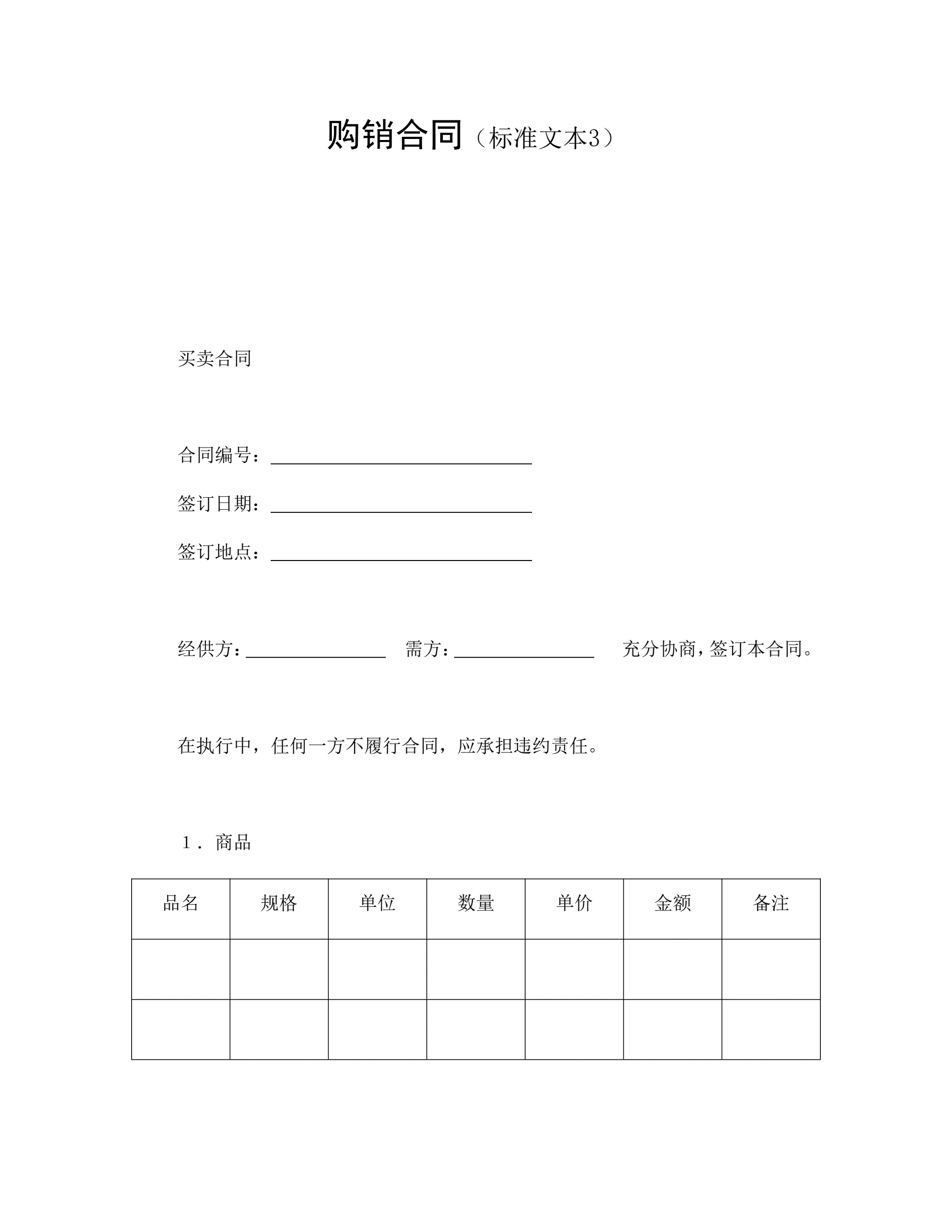 >购销合同(标准文本3)