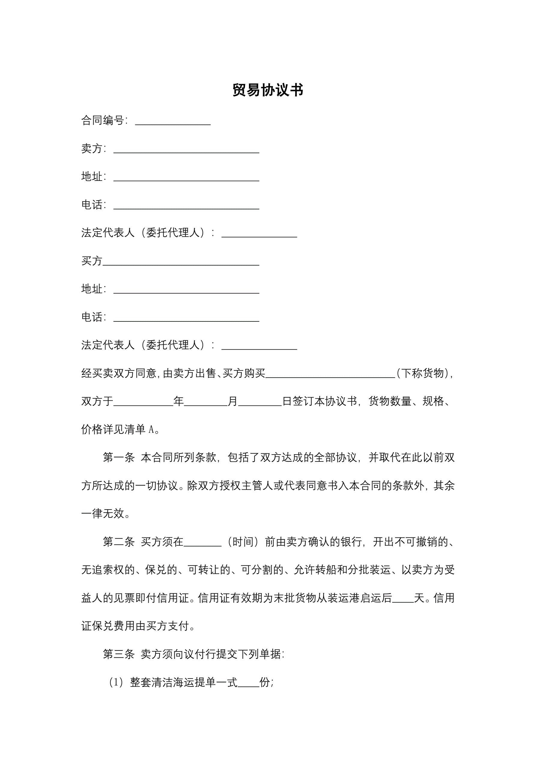 贸易协议书