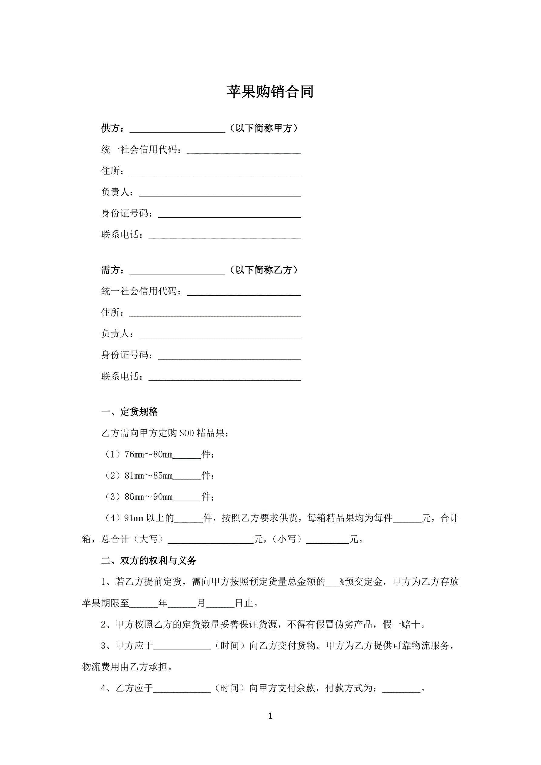 苹果购销合同
