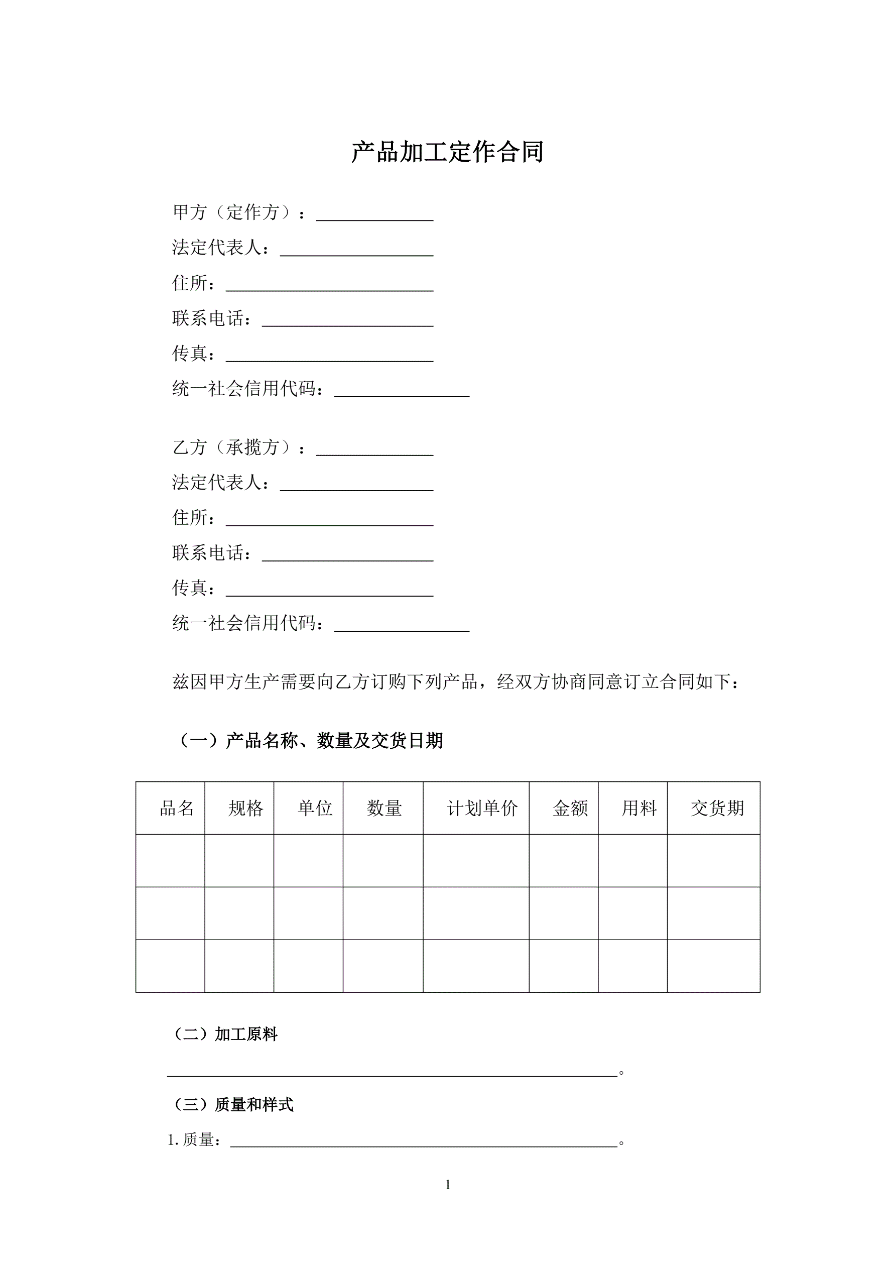 产品加工定作合同