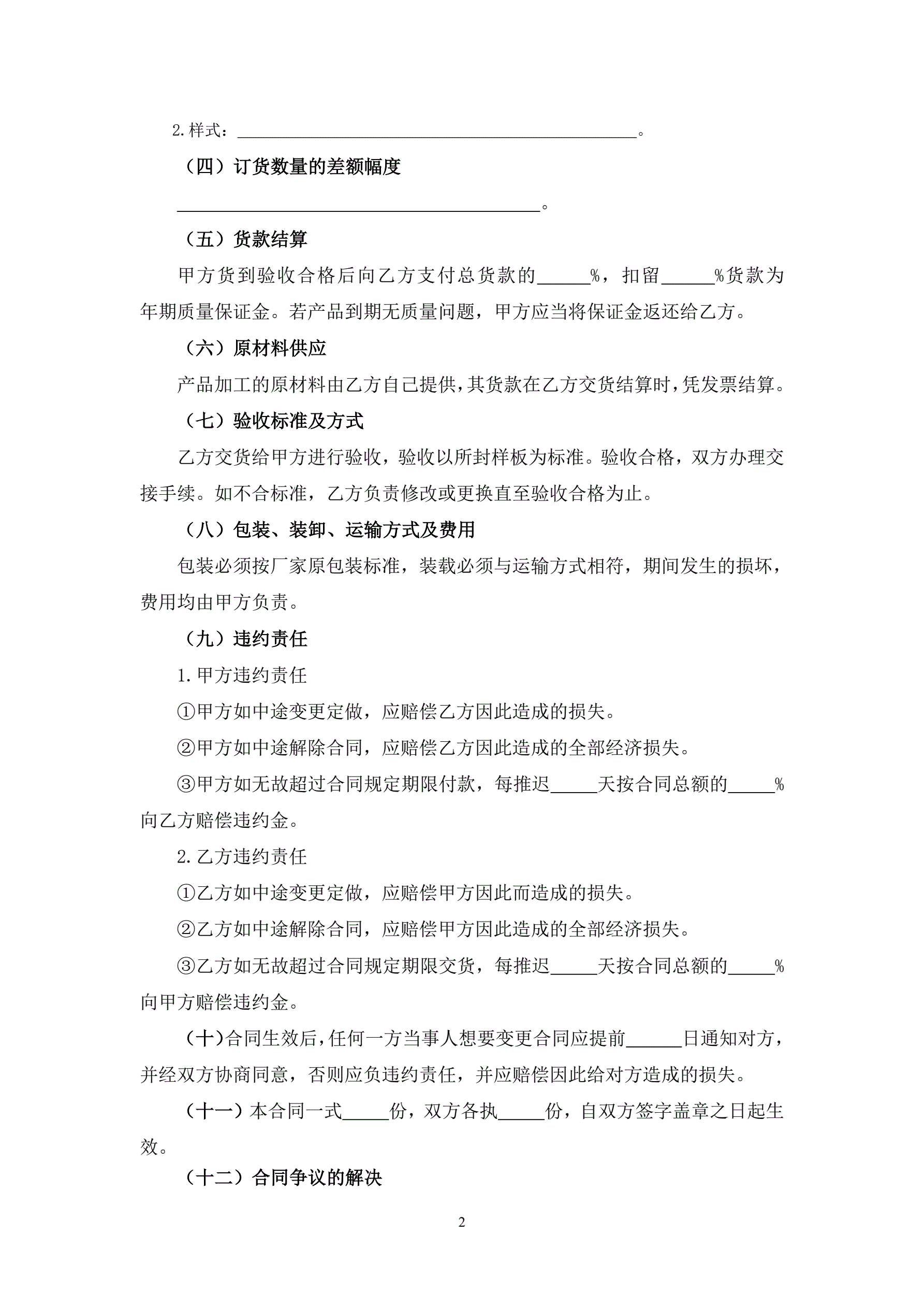 >产品加工定作合同