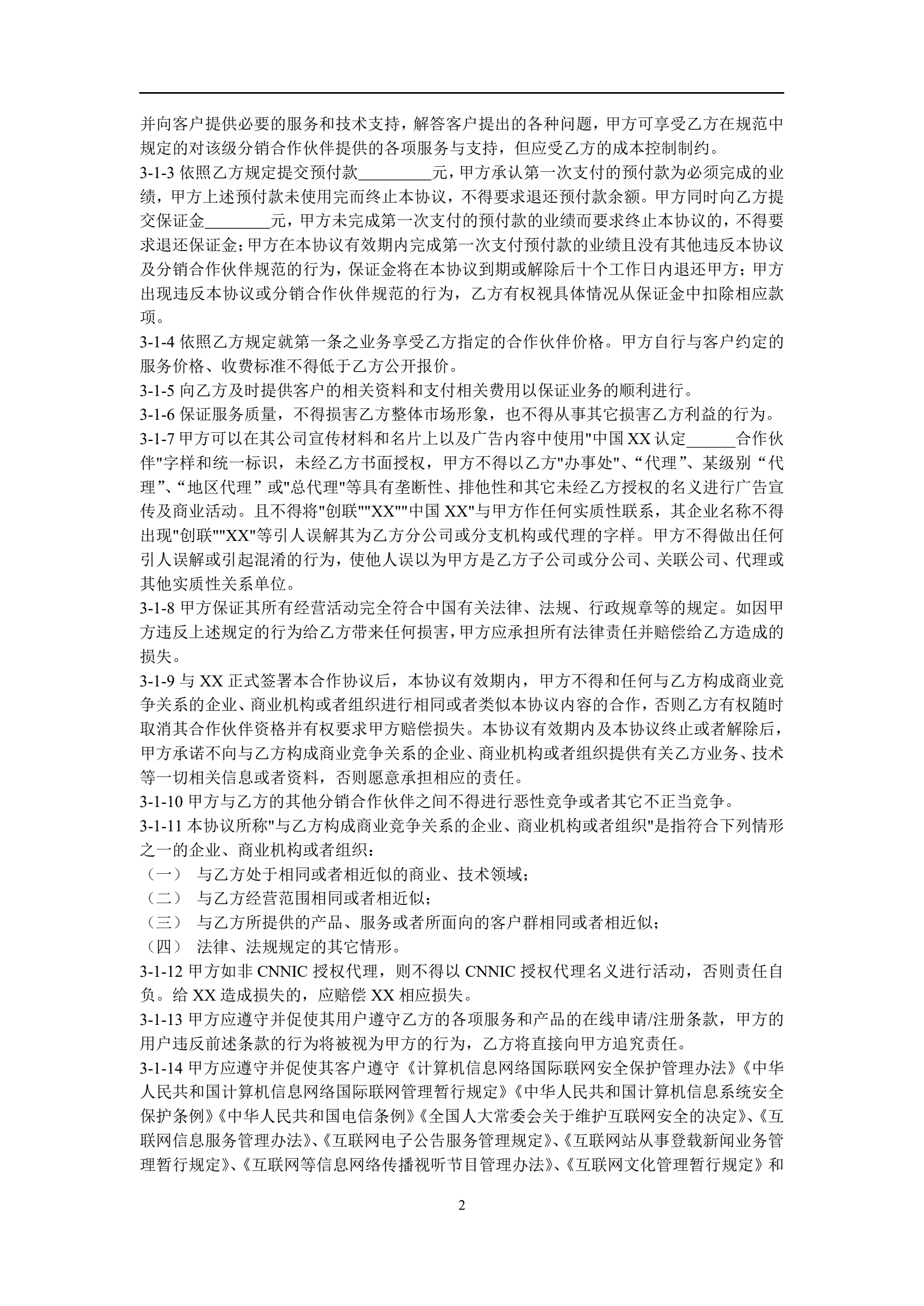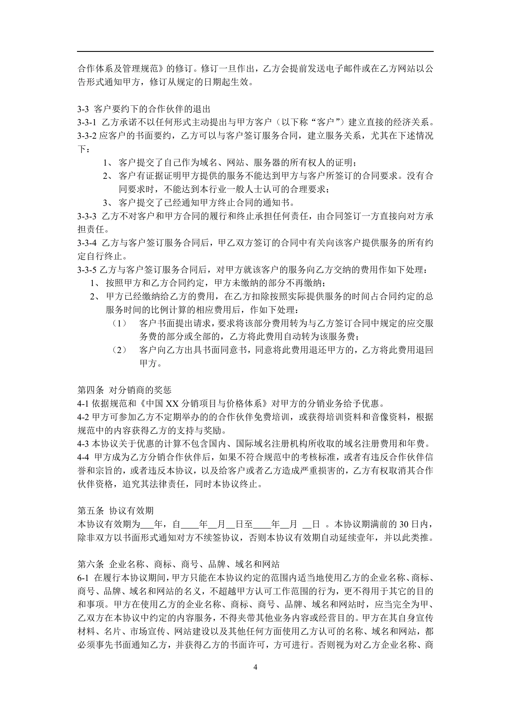 XX分销合作伙伴合作协议