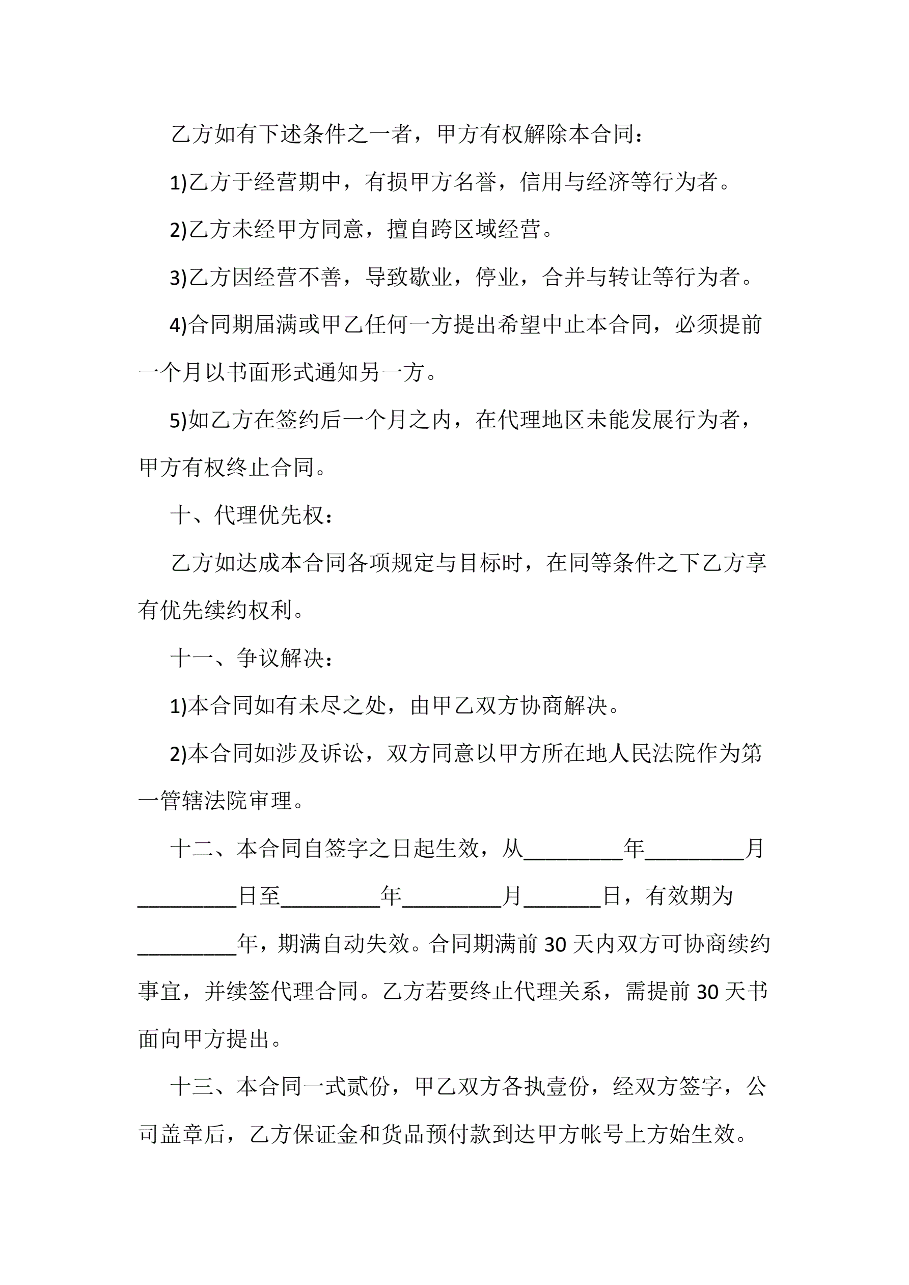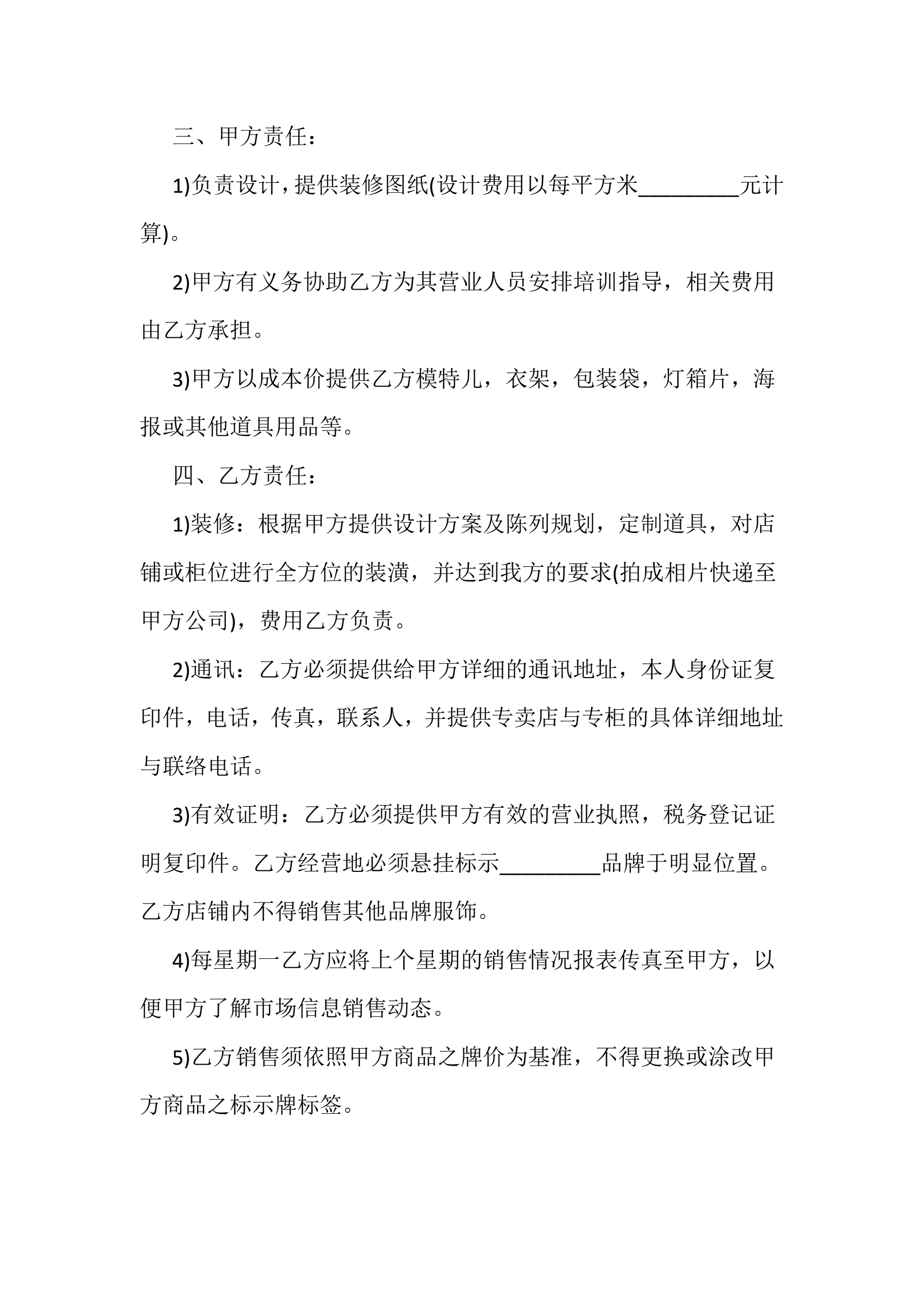 >标准版服装代理合同