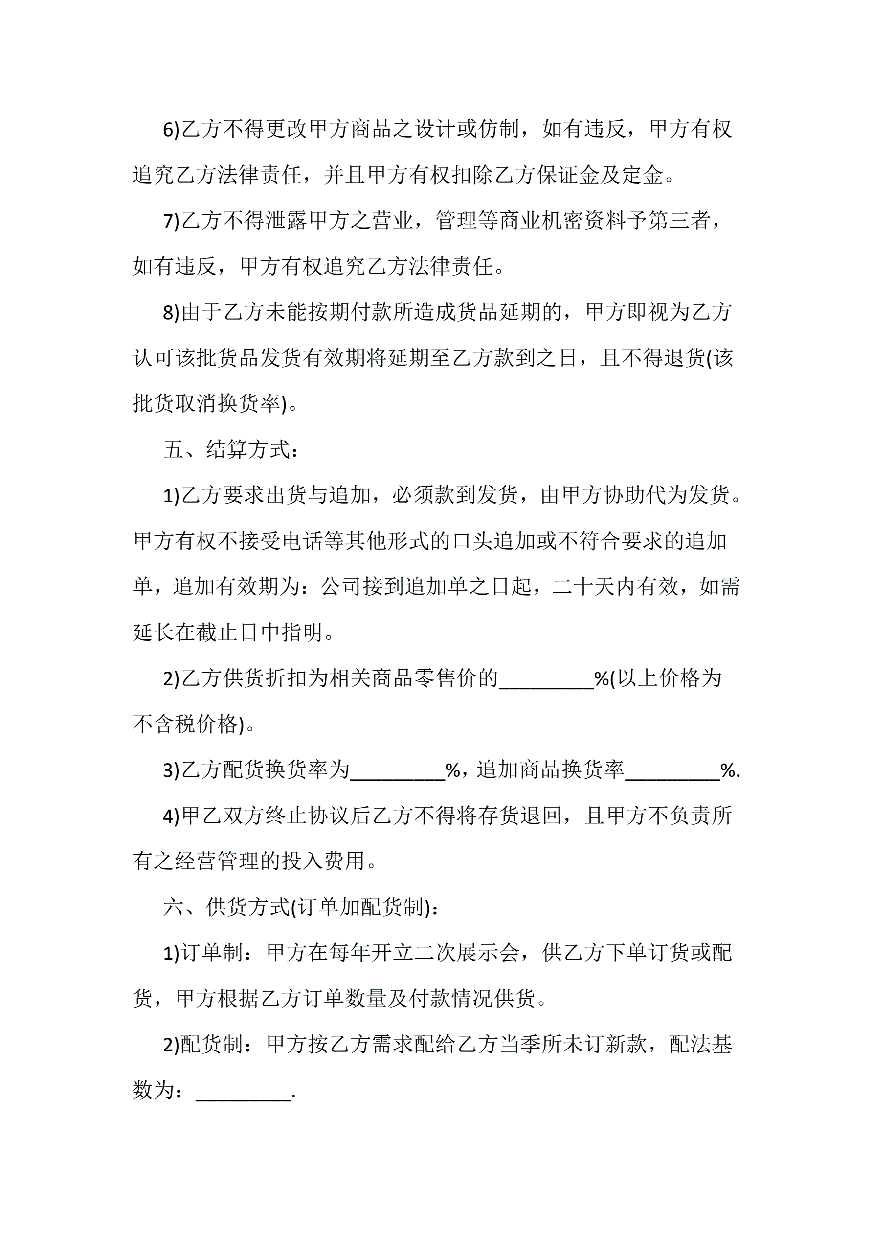标准版服装代理合同