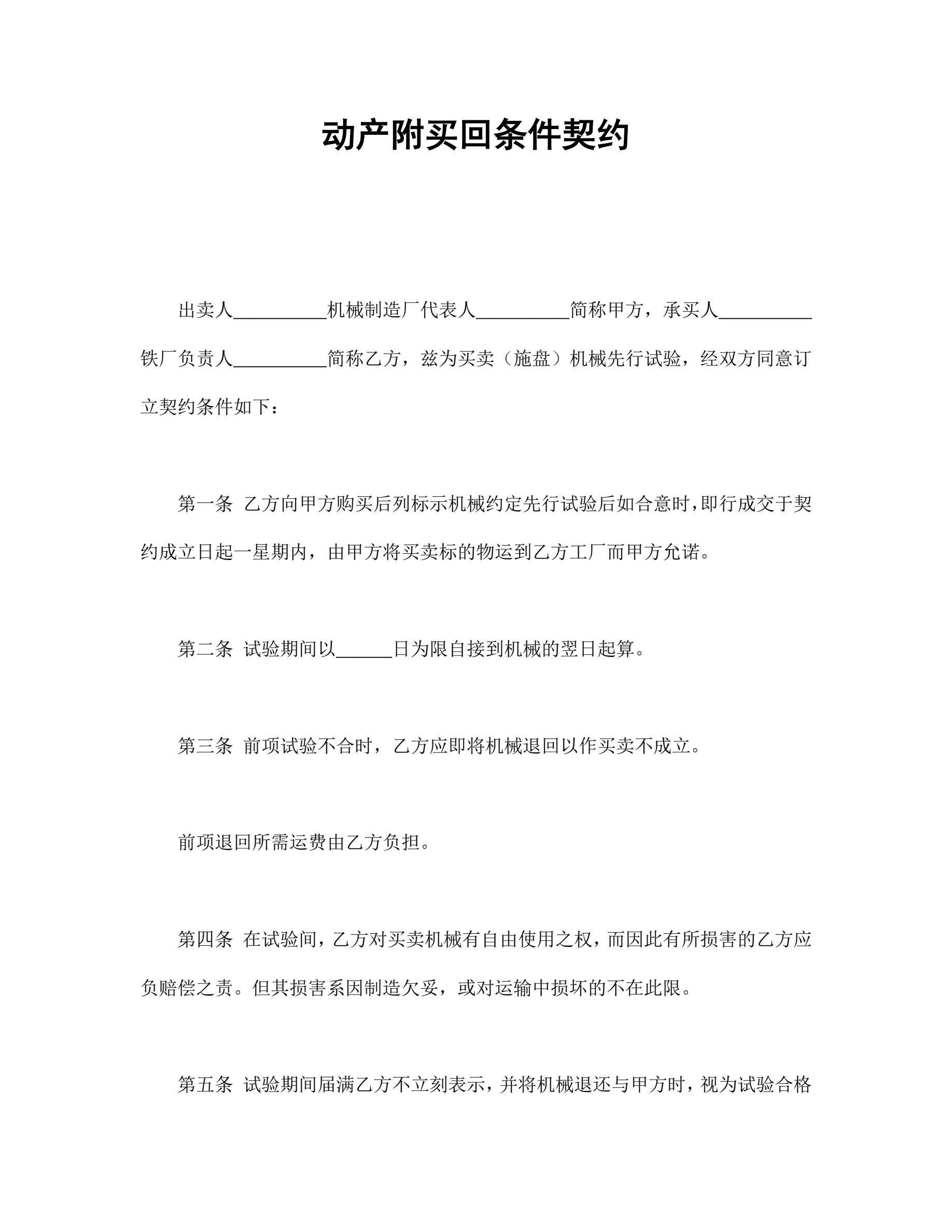 动产附买回条件契约