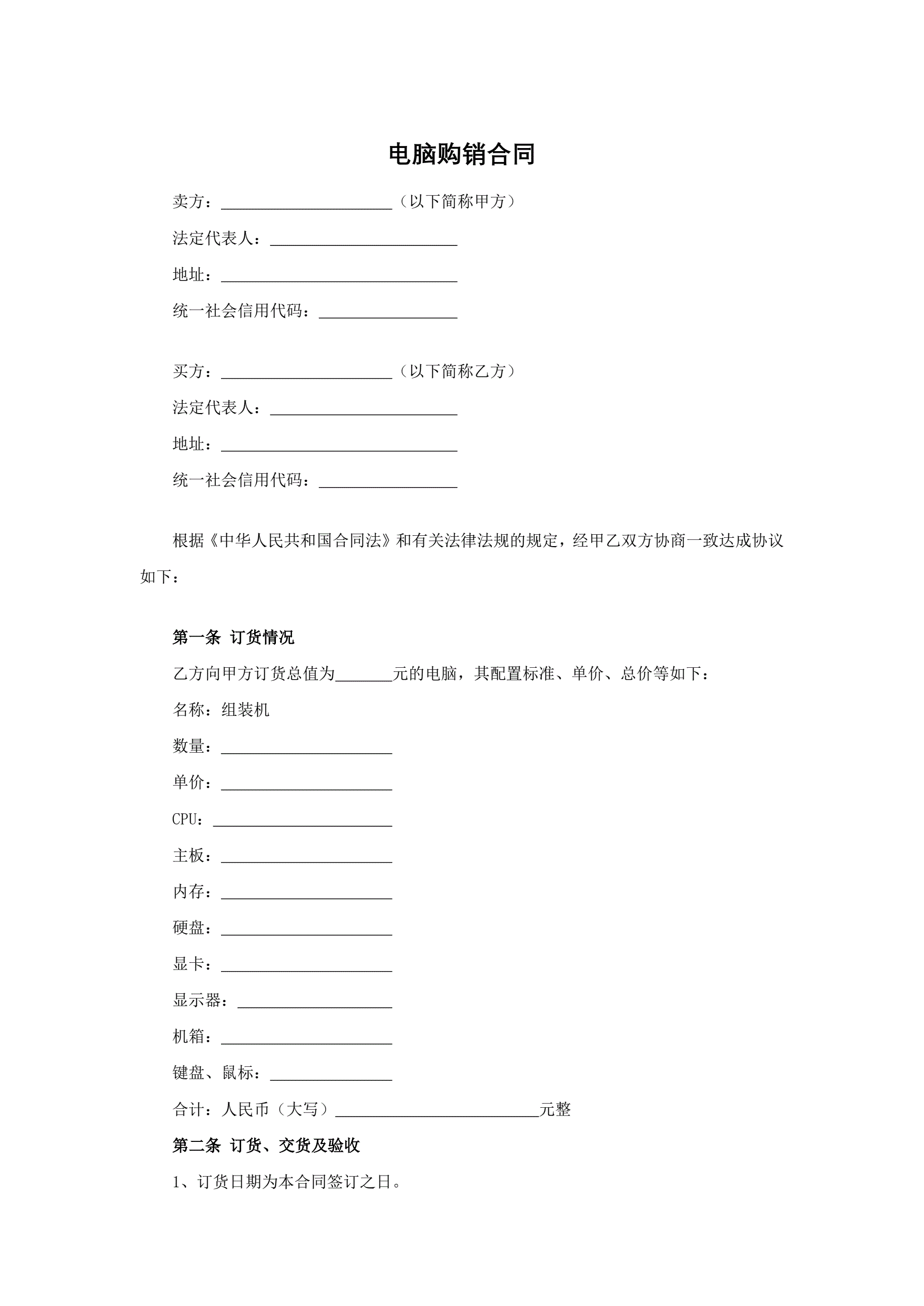 电脑购销合同