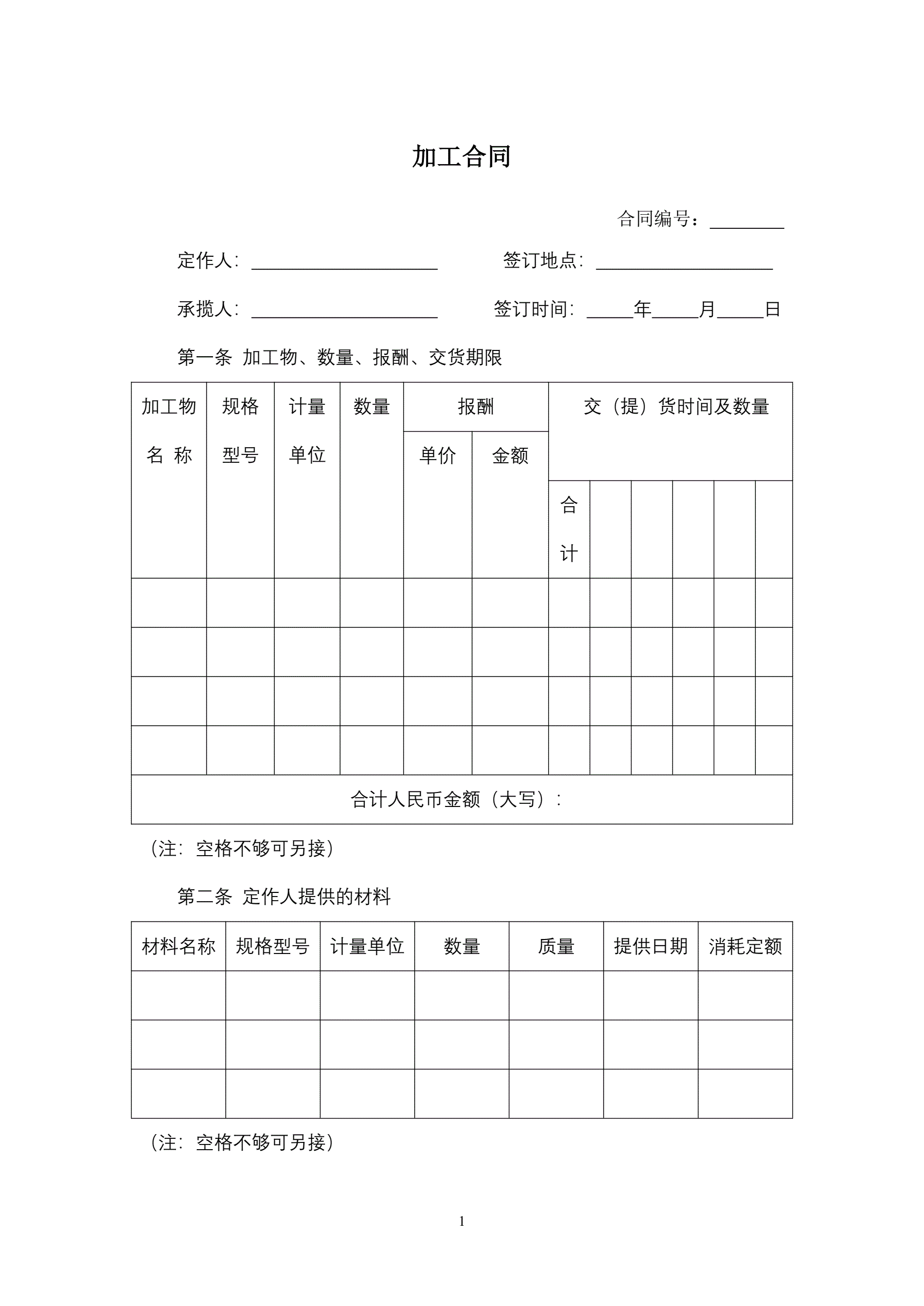 >加工合同