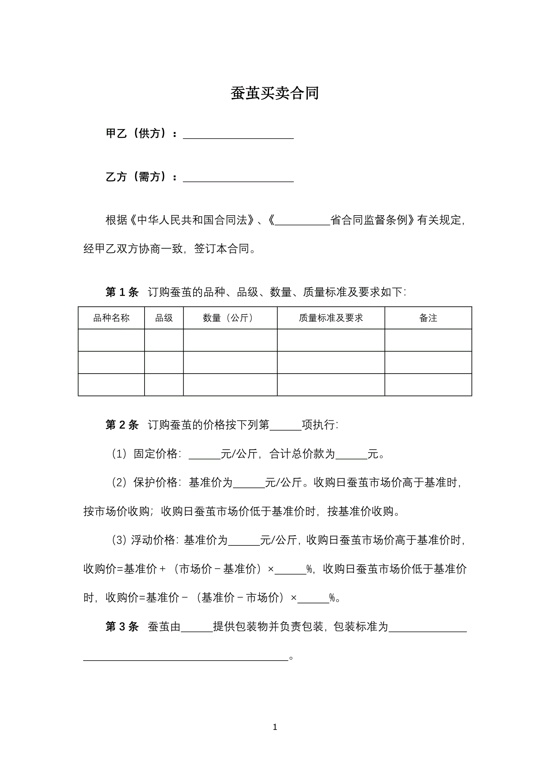 合同名称:蚕茧买卖合同