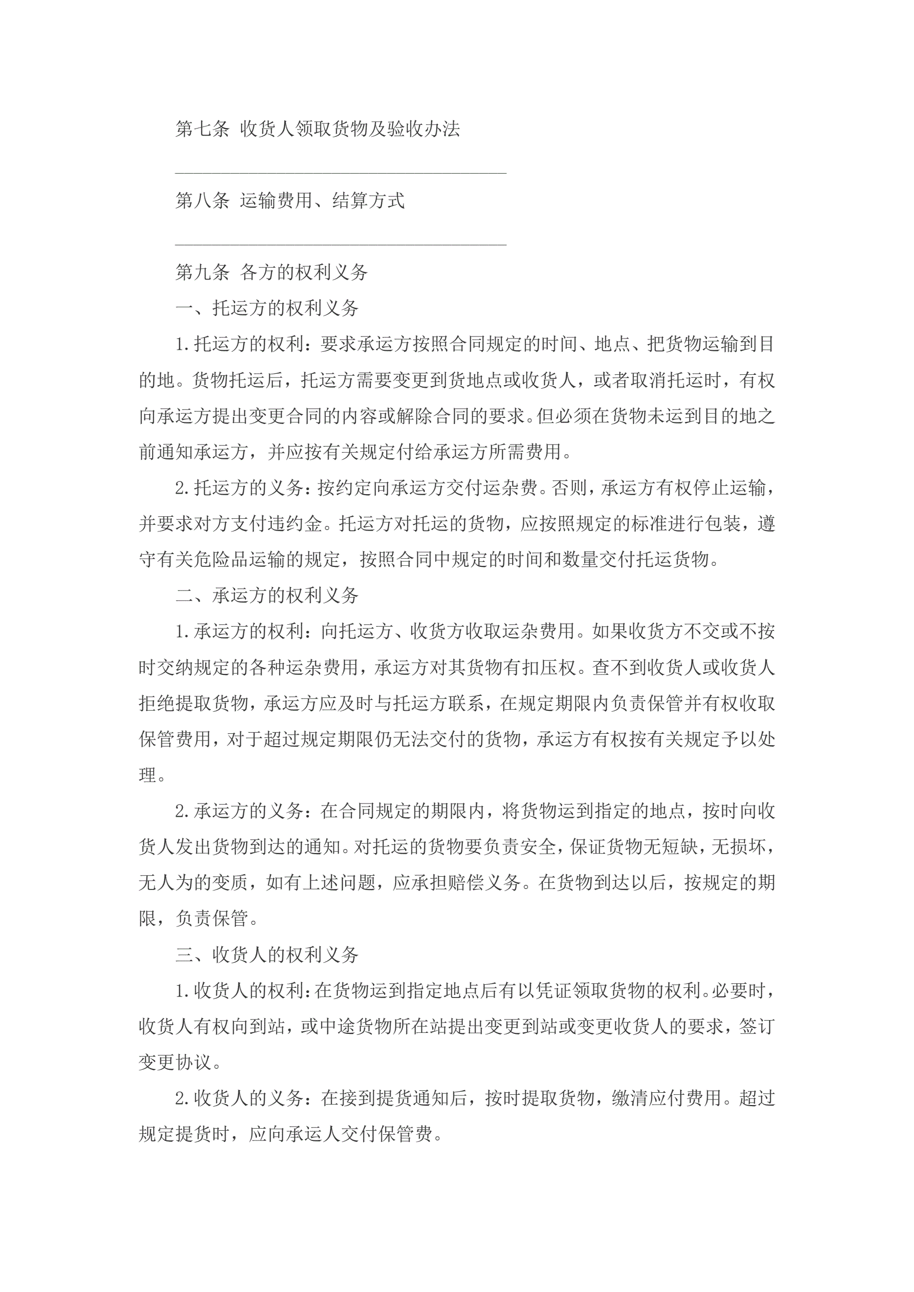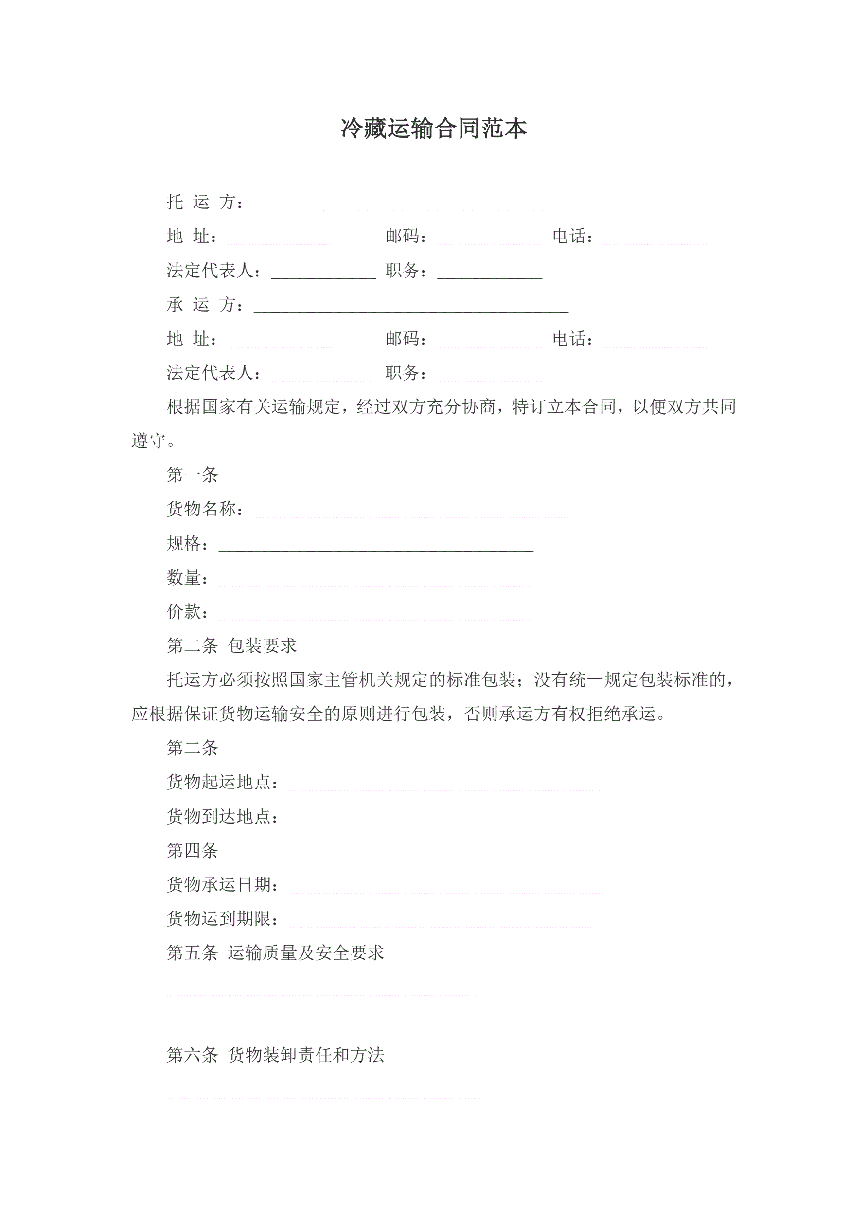 冷藏运输合同范本
