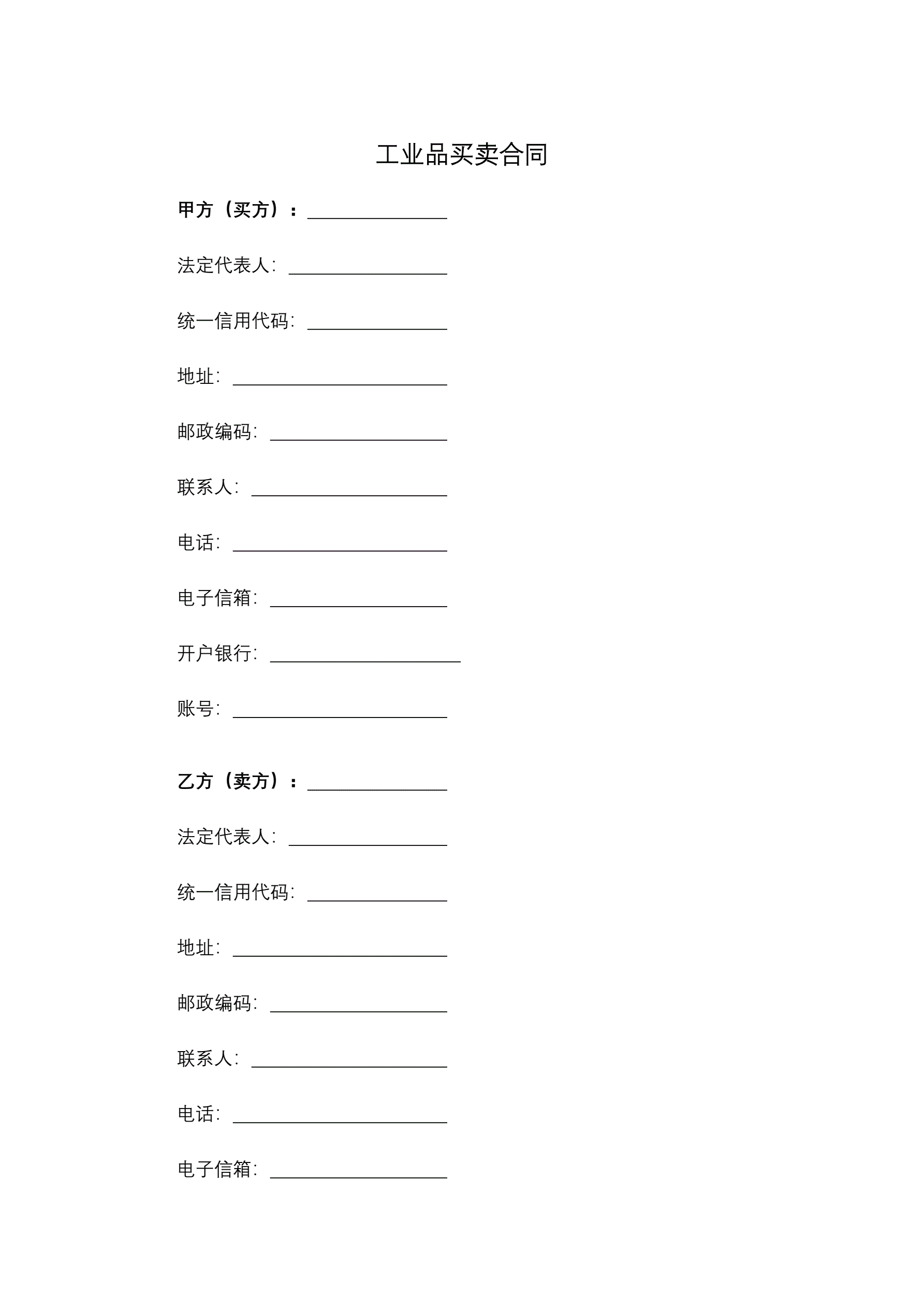 合同名称:工业品买卖合同
